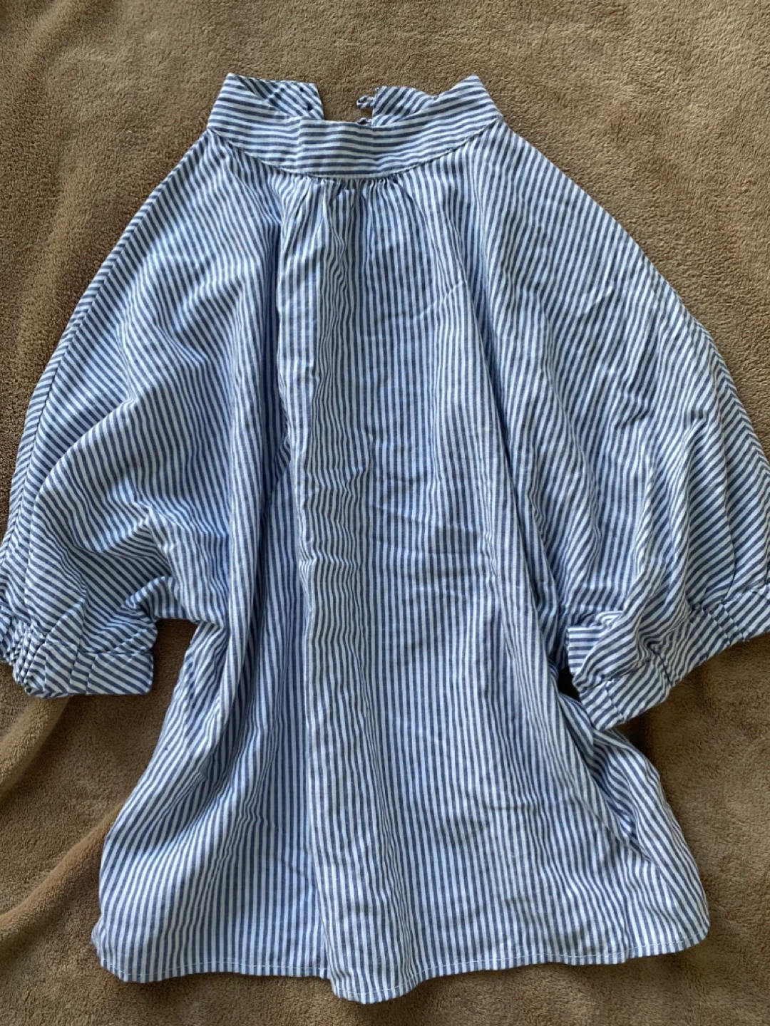 Selling a cute Zalora Basics blouse in size small! It features a blue and white striped pattern and a comfortable fit. Perfect for a casual day out or dressing up for a more polished look
