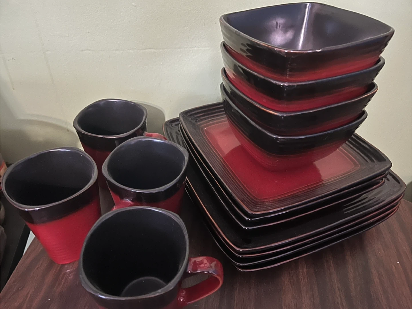 Buy & SellRed & Black Square Dinnerware SetRed & Black Square Dinnerware Set$20Sets of 4. Small plate is missing one and one bowl has a chip but other than that it's in good condition. Pick up onlyWHERE TO MEETCheck LocationView MapSELLERBrittniJasper Park12111 reviews1 chats·2 favorites·25 viewsSEND CHAT TO SELLERHi Brittni! I’m interested in your listing.Hi Brittni! I’m interested in your listing.Get the Karrot app to chatSign In to chat
