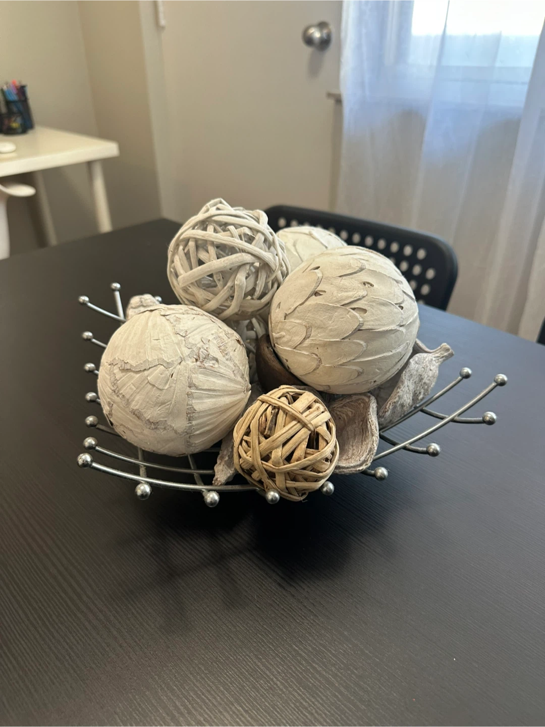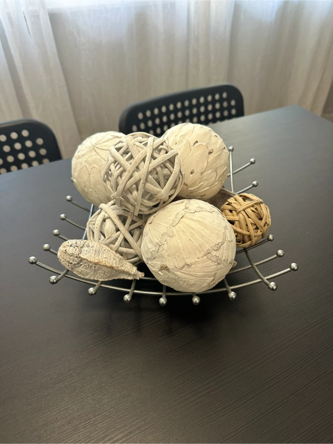 Add a touch of natural elegance to your home with this decorative ball set! It features a variety of textures and materials, all arranged in a stylish metal stand. Perfect for a coffee table or shelf, this set will bring a cozy and sophisticated vibe to any room. ✨