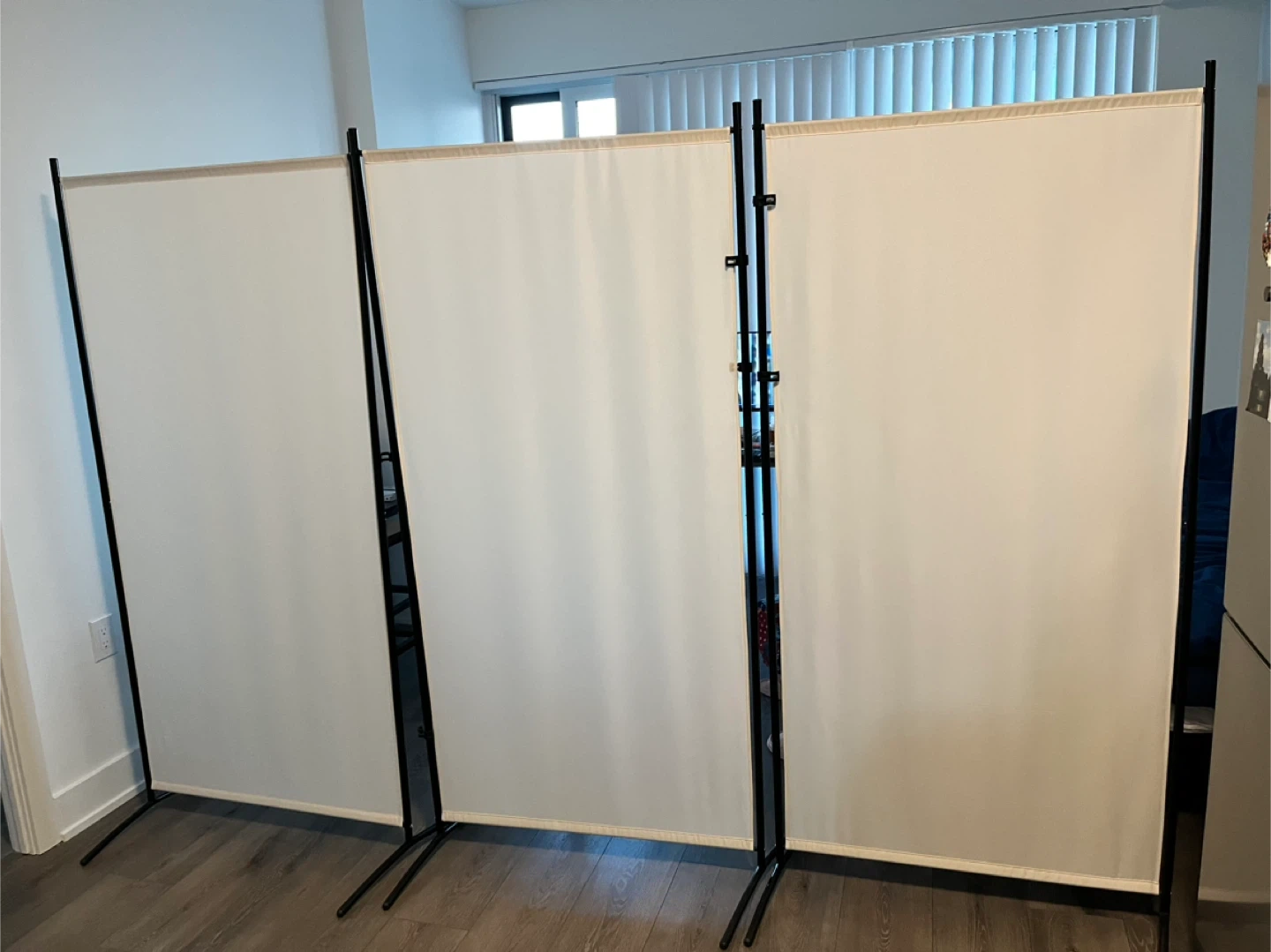 Partition Room Dividers 3 Panel Folding Privacy Screens 6FT Portable Office Walls Dividers for Room Separator, Beige This is a room divider privacy screen that's in great condition! It's perfect for creating a private space in any room. It's easy to set up and take down, and it's lightweight and portable so you can move it around as needed Used for about 2 years, but still clean since I hardly touched them. From Amazon: https://a.co/d/cSbuKNp