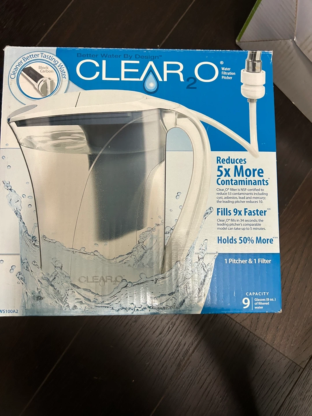 Selling a brand new Clear2O water filtration pitcher! It's still in the box and has never been used. This pitcher reduces 5x more contaminants and fills 9x faster than other leading brands. It also holds 50% more water. Enjoy cleaner, better tasting water!