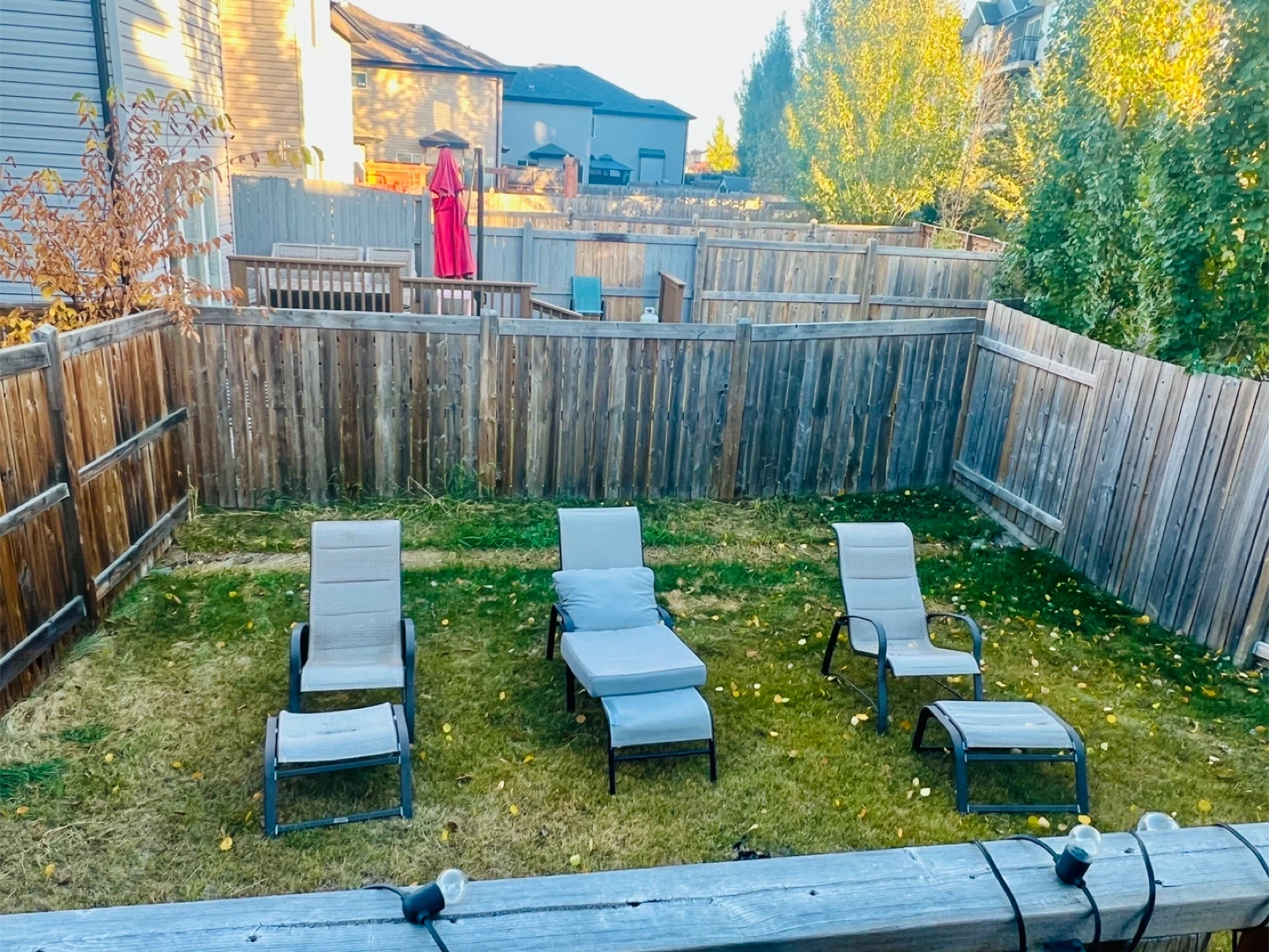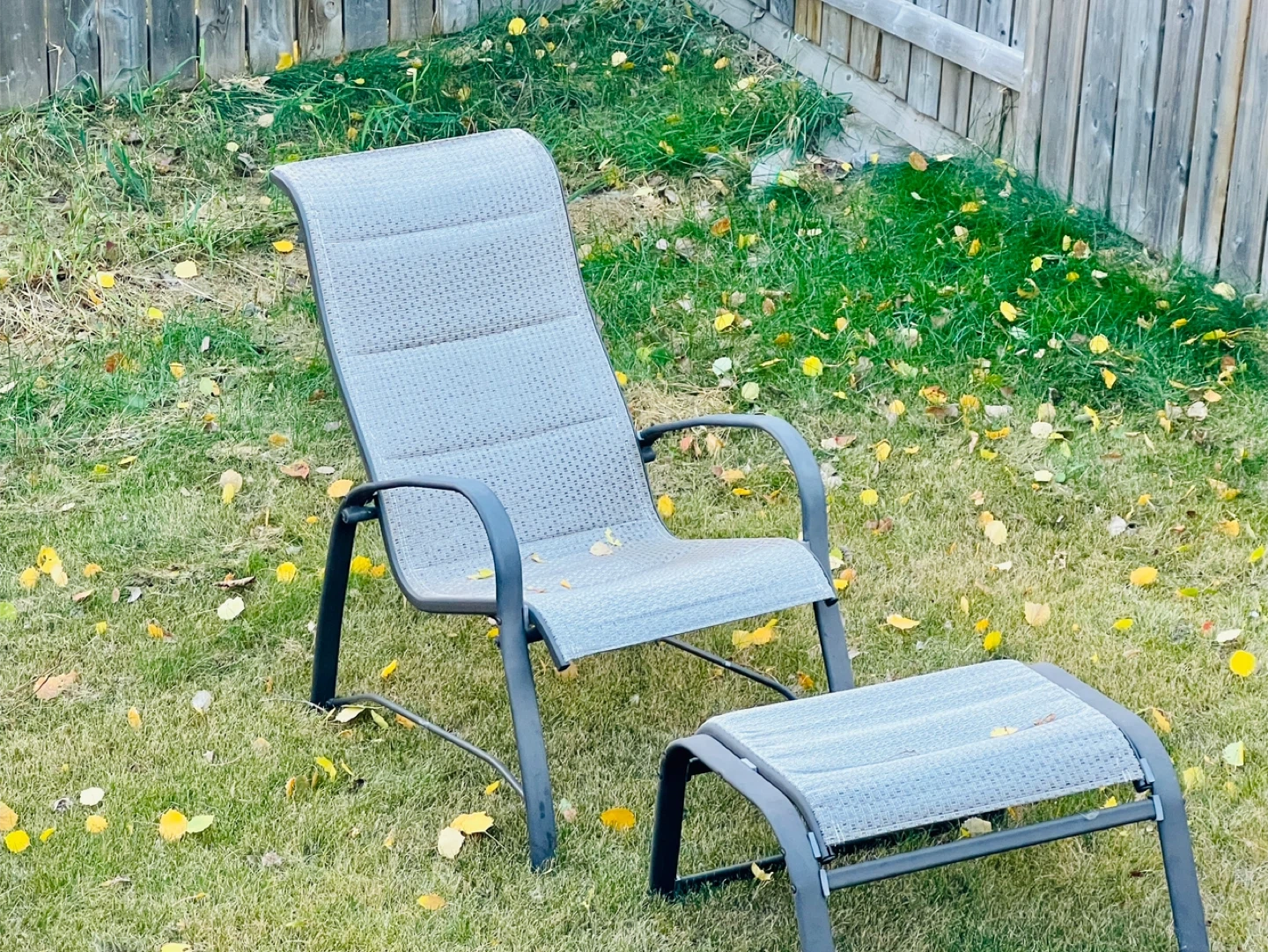 Outdoor patio chair with a matching ottoman for extra comfort! The chair is in good condition and perfect for relaxing on your patio or in your backyard