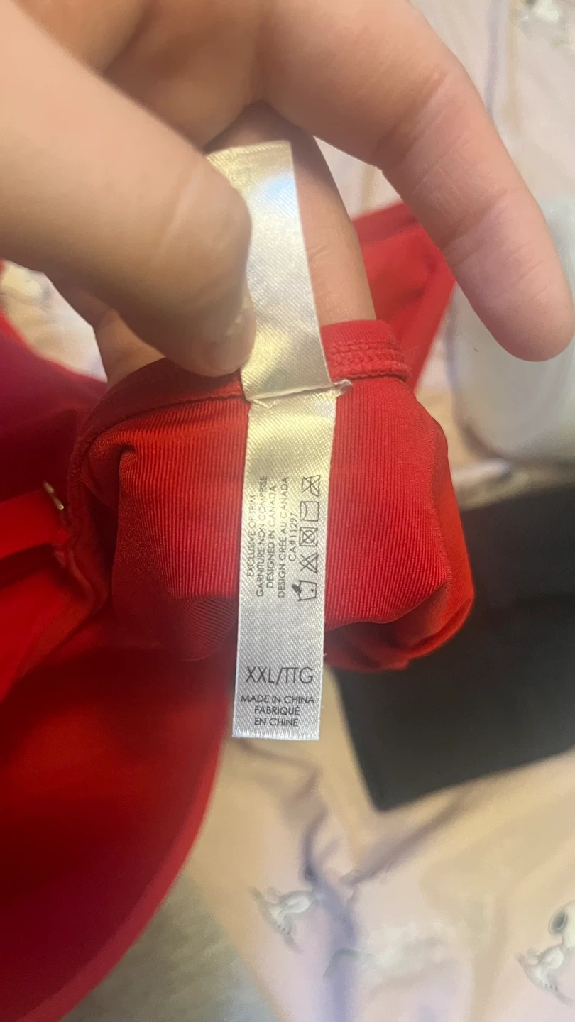 26Selling a red swimsuit in size XXL. Bought this almost two years ago and have only worn it a hand full of times it’s a great swim suit and would even look cute as a body suit. It became to large on me so I have no use for it anymore. It’s a beautiful red colour with gold detailing on the straps. I originally pad nearly $200 for this but am selling it for $40. there’s a small sharpie stain on one of the straps (picture shown in listing)and I sewed the straps to try to make it fit me better. I’m willing to lower the price some more and I can even take out the sewing without damaging the straps if you’d like. If this listing is still up then it’s still available thank you!