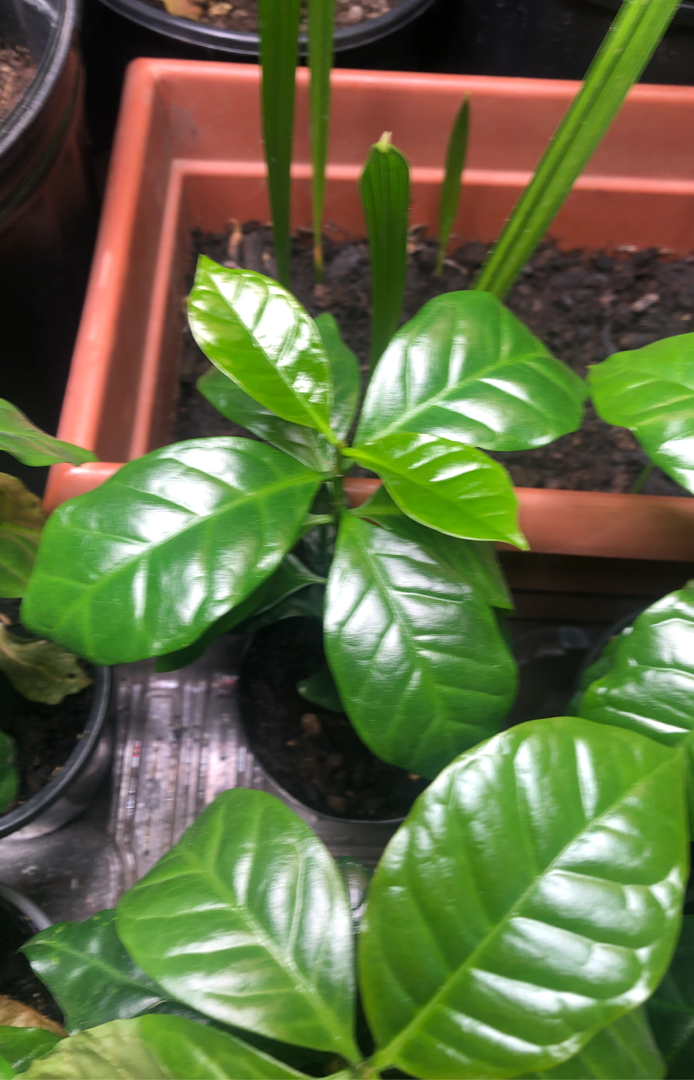 I'm selling a healthy coffee plant in a pot! It has vibrant green leaves and is ready to be a beautiful addition to your home or garden