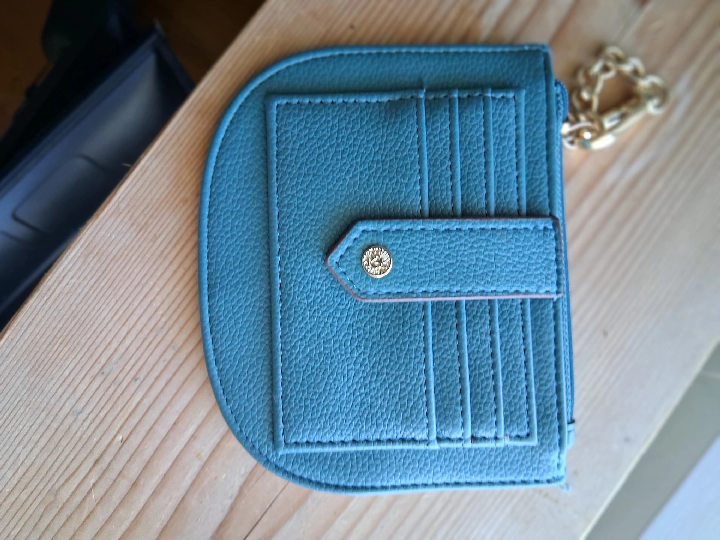 Selling a cute Anne Klein card holder wallet in a lovely teal colour! It's in great condition and perfect for carrying your essential cards and a bit of cash. The wallet has a clip on the side to attach to your keys or bag. A stylish and practical accessory! Never used!