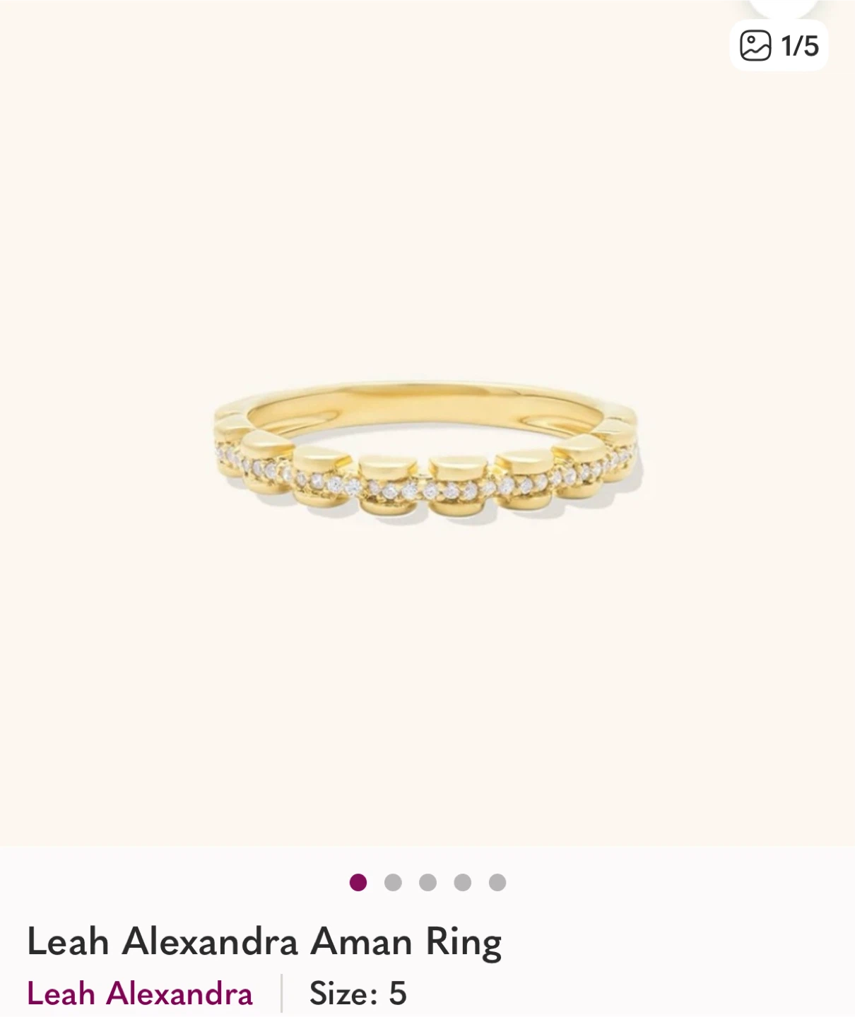 Selling a beautiful Leah Alexandra Aman ring in size 5! It's a lovely piece to add a touch of sparkle to any outfit. 925