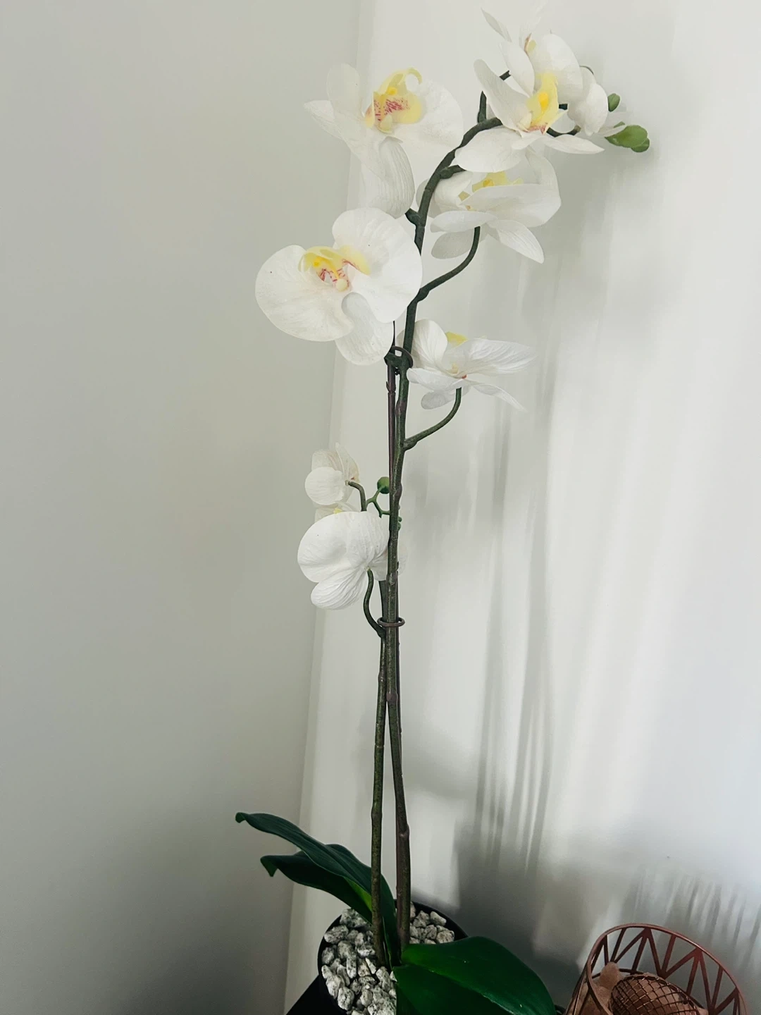 Selling a beautiful white orchid plant! It's in great condition and would look beautiful in any room. Adds a touch of elegance without the upkeep of a real plant