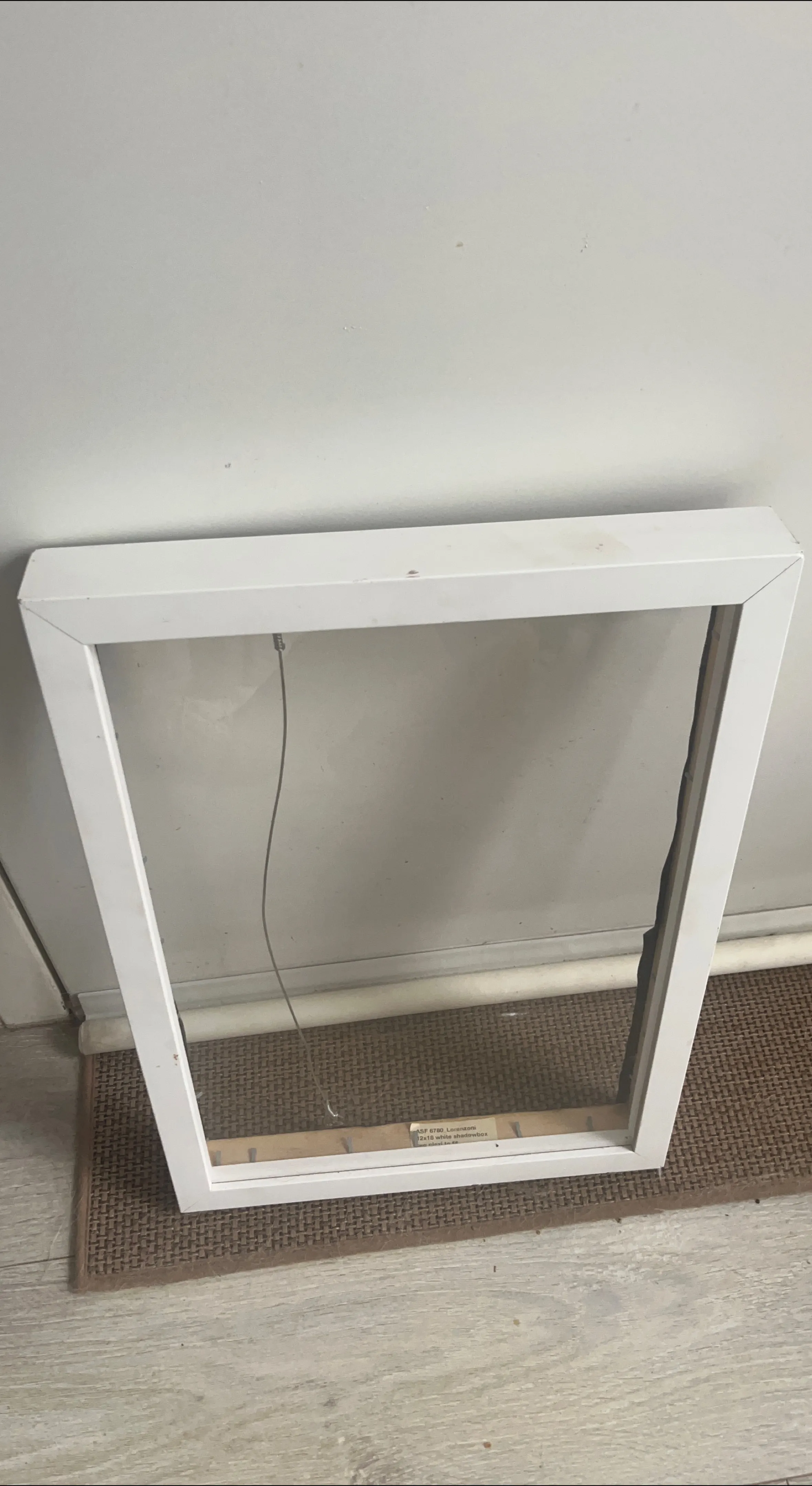 Selling a Lorenzoni 12x16 white deep potential shadow box frame. It's in OK condition but missing the back