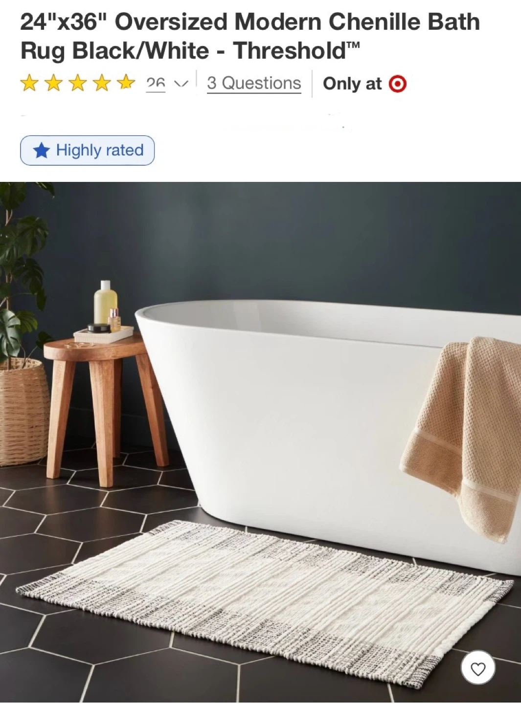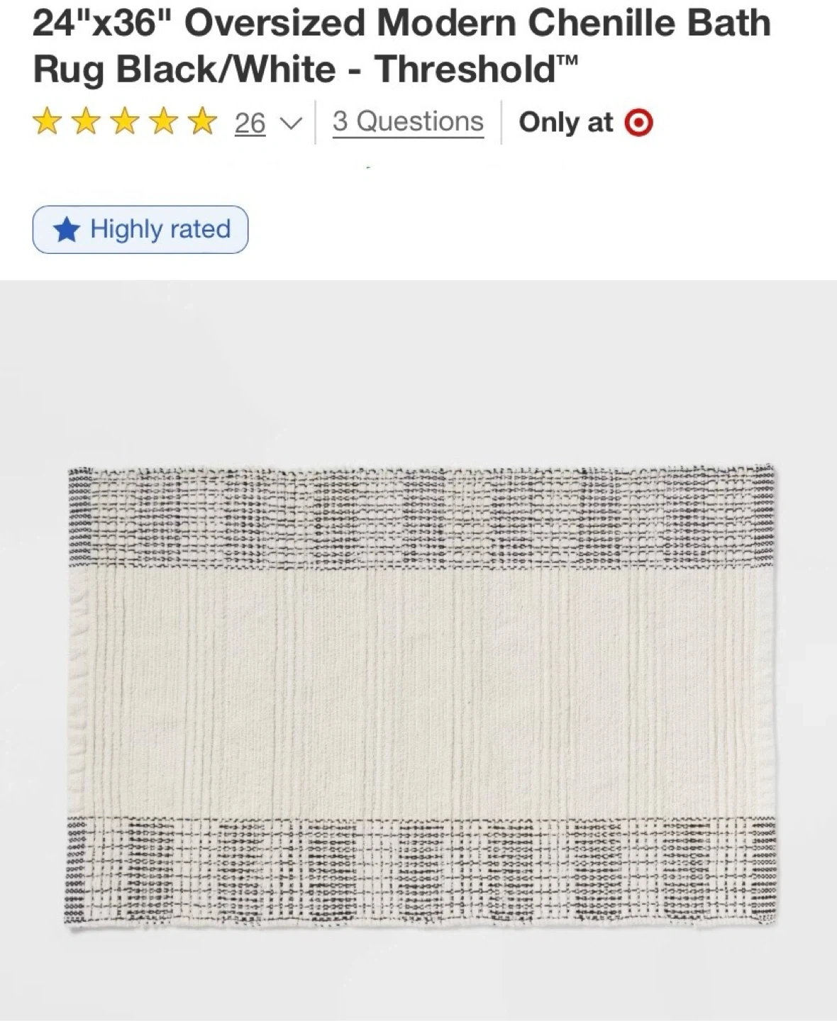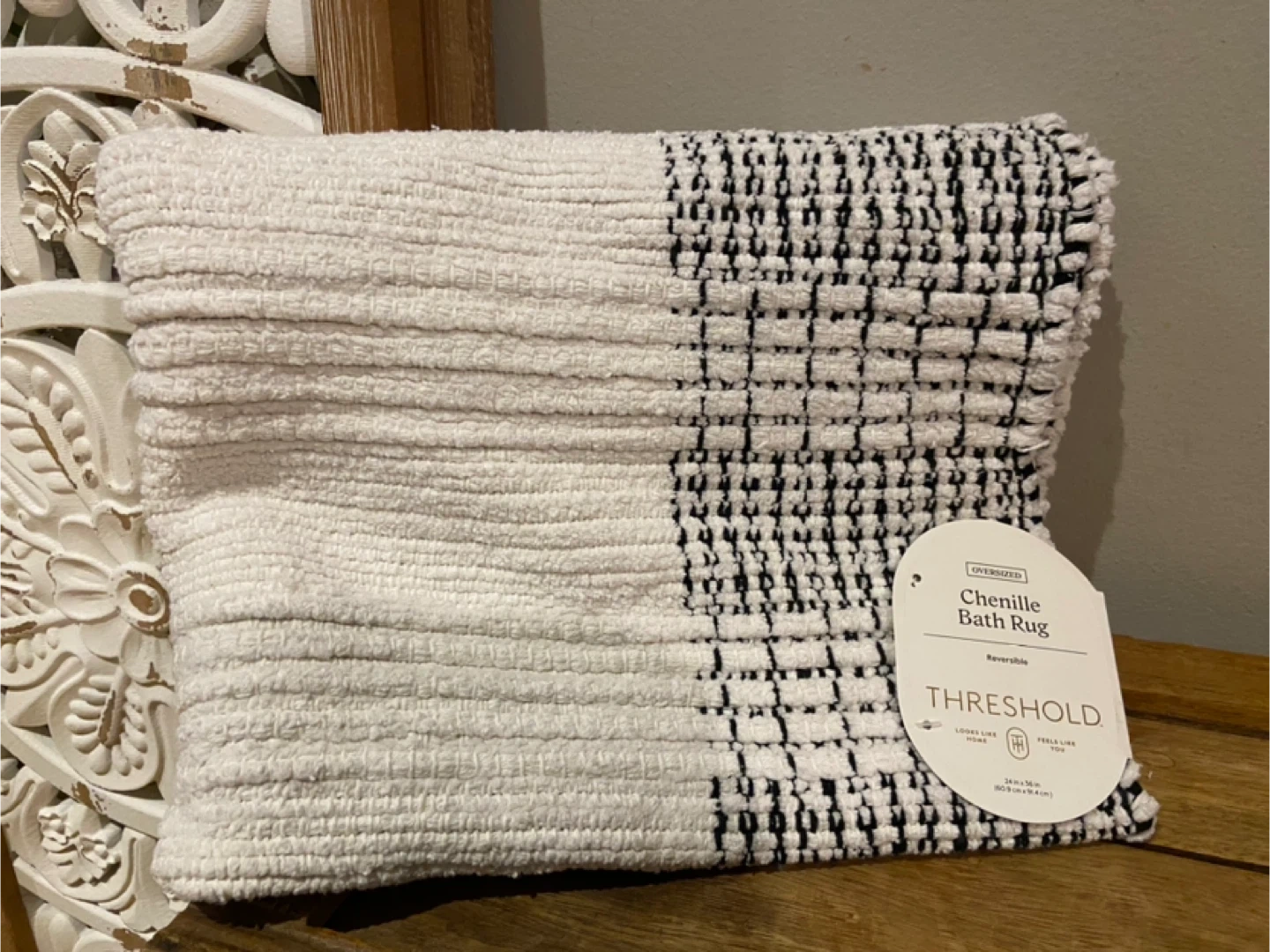 291New Threshold 24"x36" Oversized Modern Chenille Bath Rug Black/White $20 (retail $42 plus tax) Pickup in Whitby