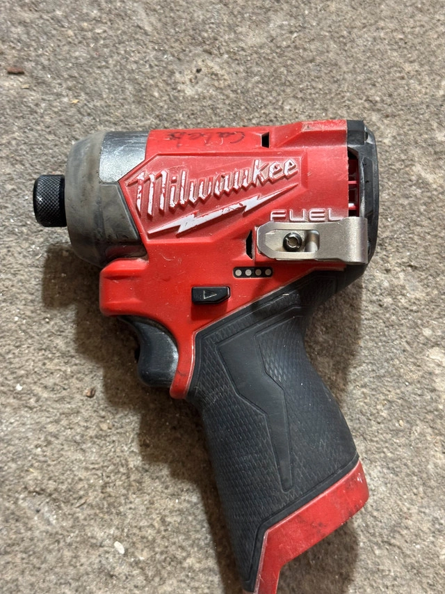 23Good condition. Working, no issues. Milwaukee Tool M12 FUEL 12V Lithium-Ion Brushless Cordless Next Generation 1/4 in. Hex Impact Driver (Tool-Only). Thanks