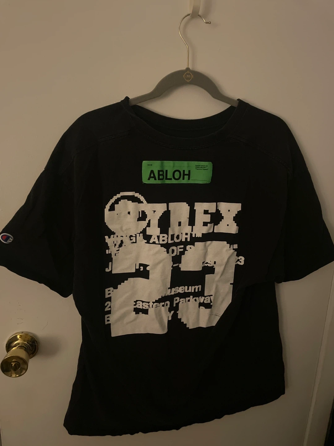 Design by Virgil Abloh in collaboration with Off-White and Champion. Size: medium/ large