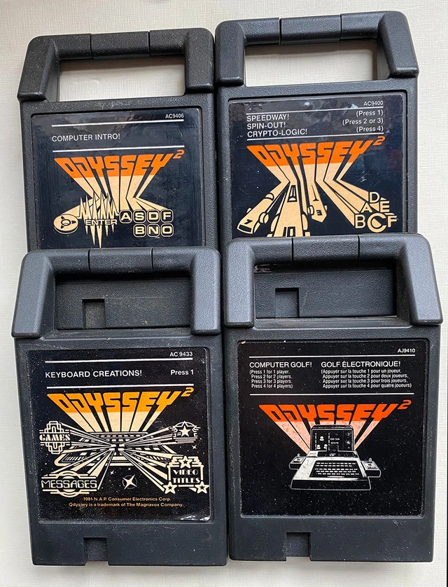 72Vintage MagnaVox Odyssey 2 Intro Speedway Spin-out Cryptologic Computer Golf 4 Cartridges in good working condition. Selling price: $50
