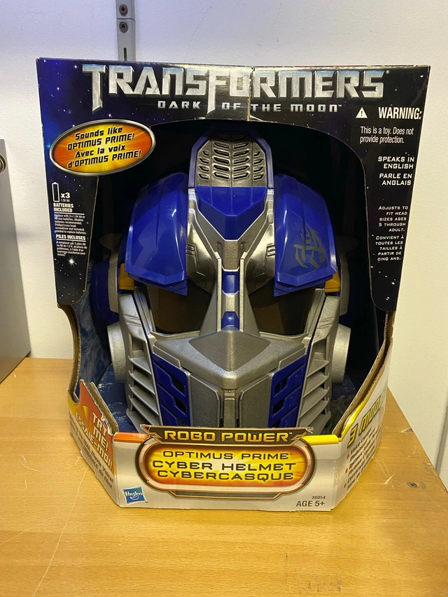 29Selling brand new hasbro transformers Optimus prime helmet, was released back when the dark of the moon movie was released, very hard piece to find. Has buttons on the helmet to make sounds and phrases, even a voice changer!