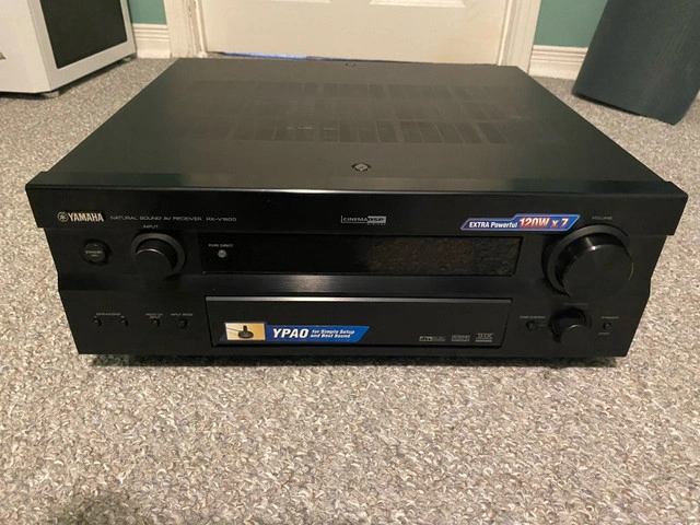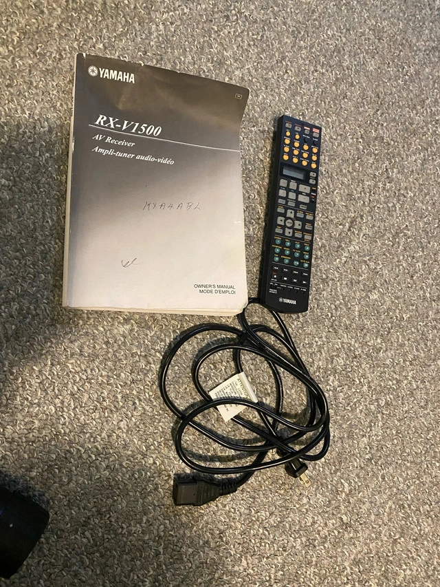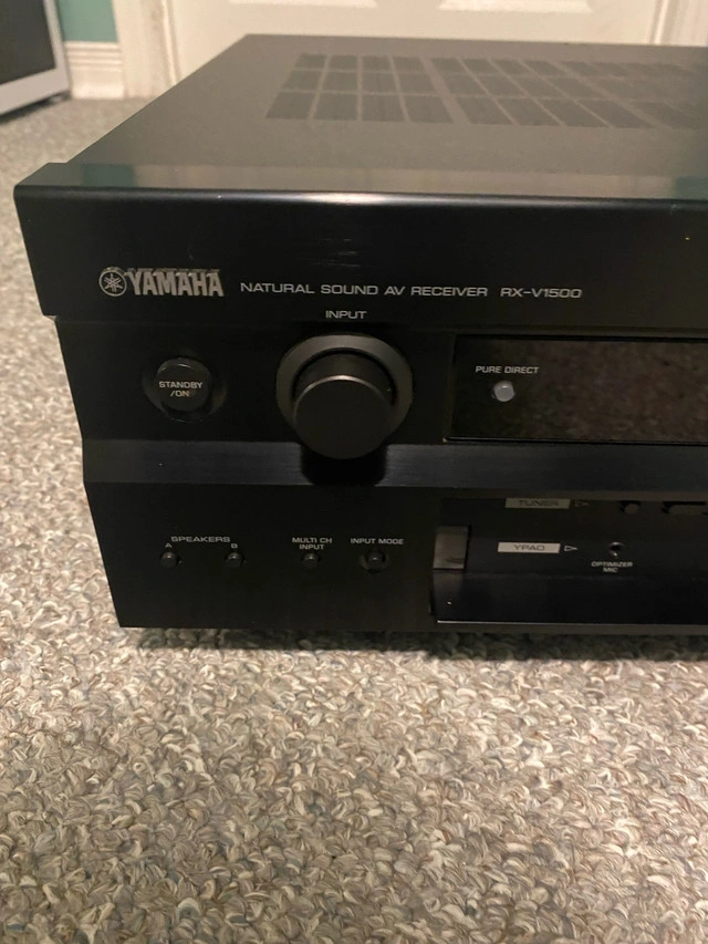 29Selling Yamaha RX-V1500 Natural Sound AV Receiver in mint condition, comes with power cable, manual and remote. Online specs: 7-Channel 840W Powerful Surround Sound (120W x 7 RMS) [8 ohms, 20 Hz-20 kHz, 0.04% THD] Digital ToP-ART and High Current Amplification Pure Direct Switch for High Quality 2-Channel and Multi-Channel Sound Reproduction 192 kHz/24-Bit DACs for All Channels YPAO Automatically Sets Best Sound for Any Room, Any Speaker Placement Dialogue Lift for Enhanced Dialogue Sound 9-Channel Speaker Outputs with Zone 2 Out RS-232C Interface, Trigger Output and IR Port Dolby Pro Logic IIx Zone 2 Speaker Out and Amplifier Assignment, and Zone 3 Volume Front Panel Video Aux Inputs with Optical Digital an d S-Video 8 Digital Inputs (5 Optical/3 Coaxial): [Fixed and Assignable] Dolby Pro Logic IIx and DTS 96/24 Compatibility Audio Delay for Adjusting Lip-Sync (0-240ms) Selectable 9-Band Subwoofer Crossover 16 Surround Programs (55 Variations) with 2 THX Programs Component Video Up Conversion HDTV (720p/1080i) Compatibility Wide-Range Video Bandwidth (60MHz -3 dB)