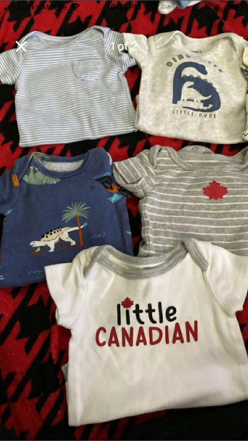 45Here's a cute bundle of Carter's baby onesies! They come in various colours and designs, perfect for your little one. The sizes are suitable for newborns up to a few months old. All are in great condition and ready for a new home! Size 0 months. Smoke Free. Pet Free. No porch pick up Pick up only Beatrice and Wilson Oshawa