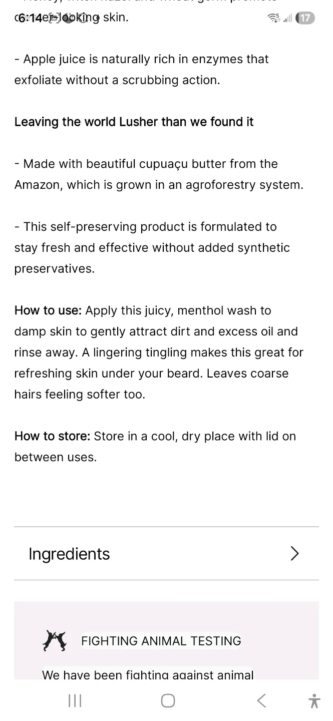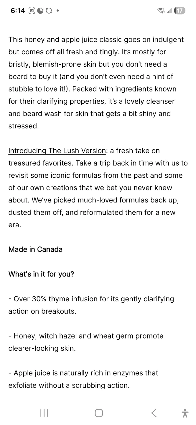 This LUSH Mostly Face Wash is a clarifying cleanser with a thyme infusion, yogurt, and mint. It goes on indulgent but comes off fresh and tingly, suitable for blemish-prone skin. Apple juice provides natural exfoliation without scrubbing.