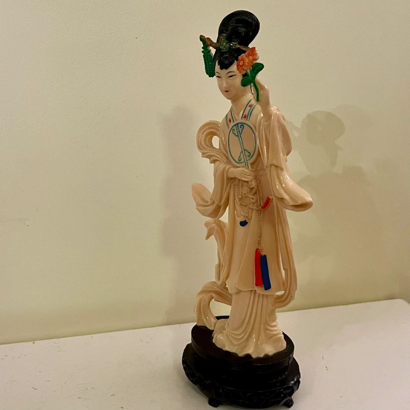 Vintage Celluloid Painted Geisha with Flowers