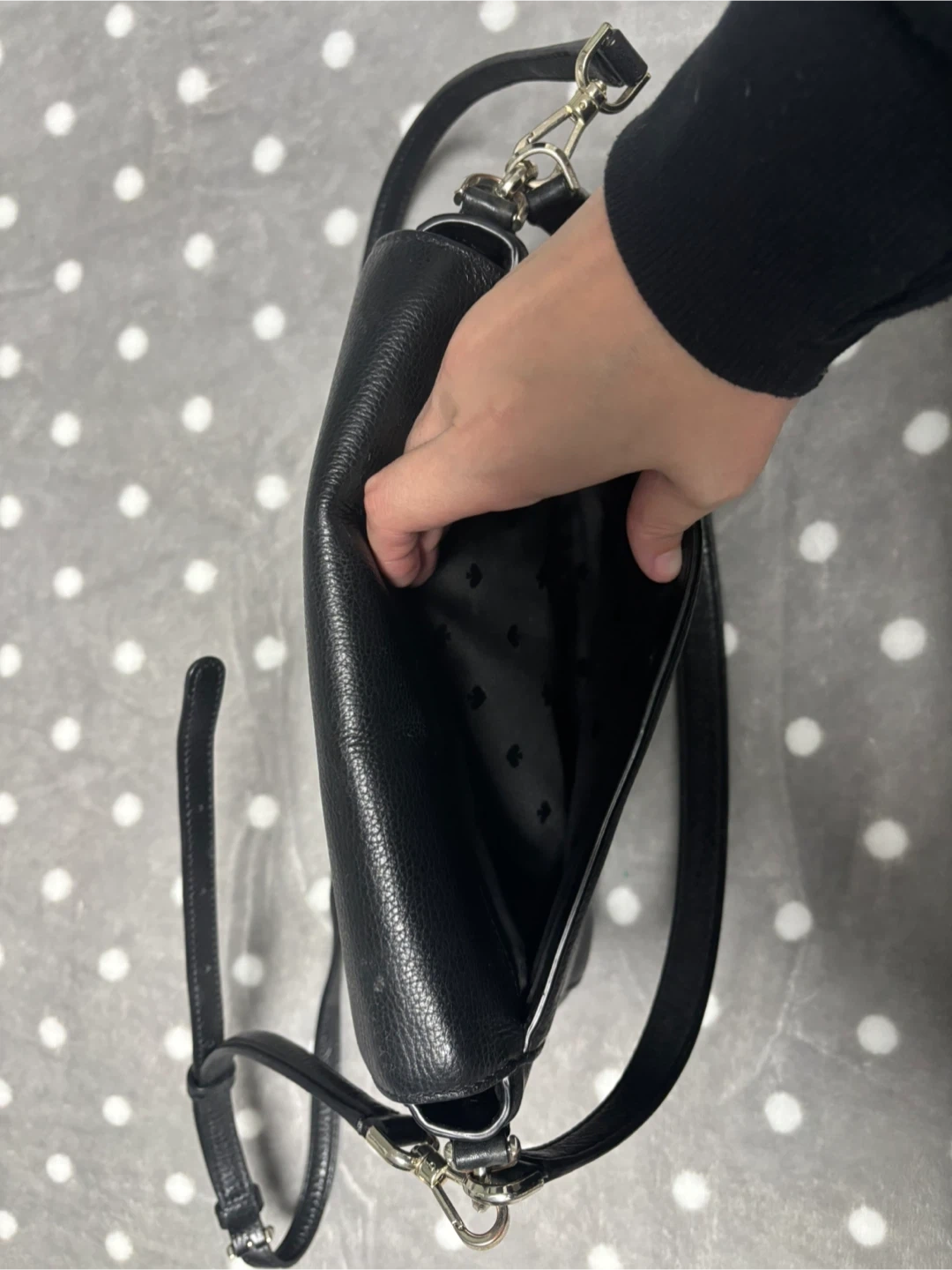 Kate Spade Satchel Bag - Magnetic back pocket - 1 large zipper and 2 small open pockets inside - top flap has a zippered pocket Matching Wallet - 6 card slots - bill pocket - zippered change pocket
