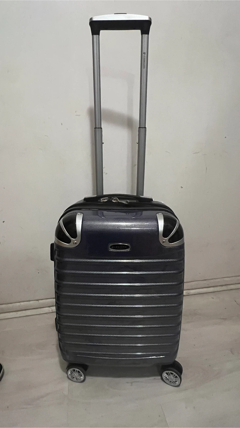 Selling a gently used Heys carry-on luggage. It's in great shape and ready for your next trip! Features a retractable handle and spinner wheels for easy maneuvering.