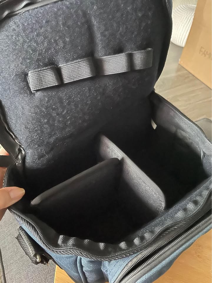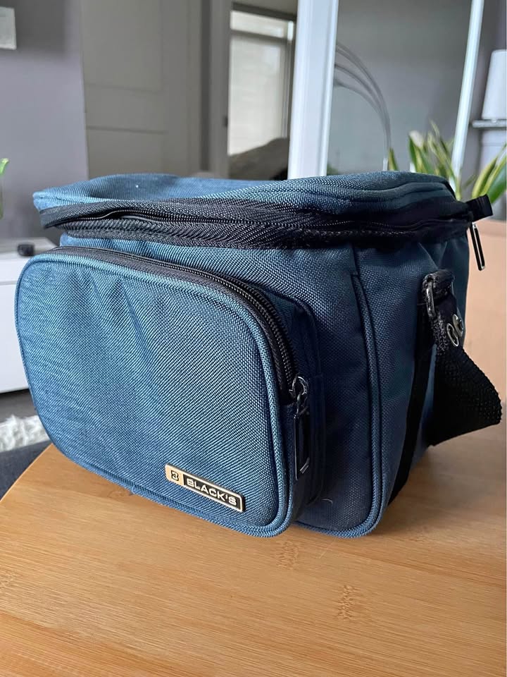 A vintage camera case with dividers. Dimensions - 10” wide x 7” height x 7” depth