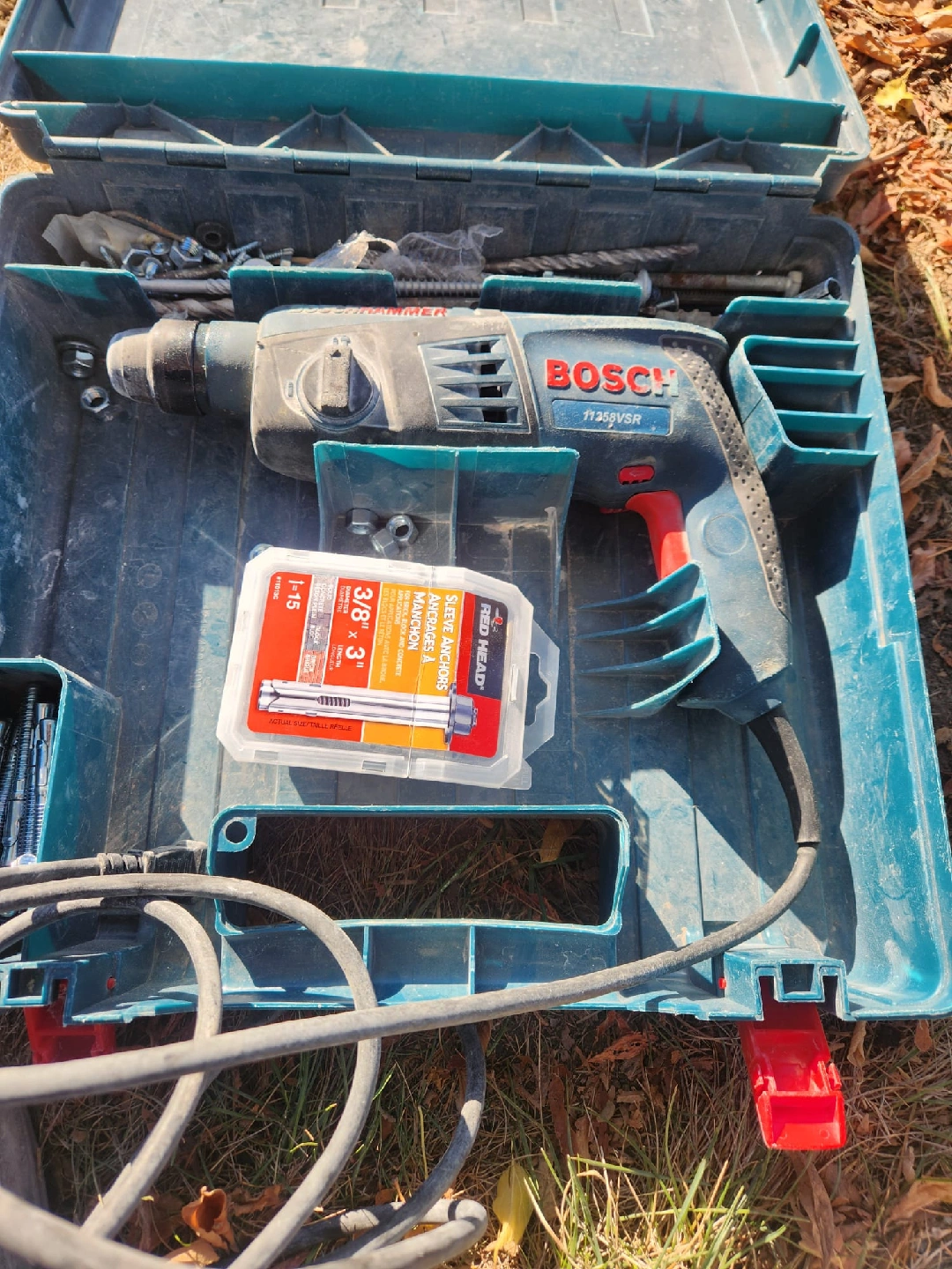 10Selling a Bosch 11258VSR rotary hammer drill. Includes a case and some sleeve anchors. Great for brick, rock, and concrete applications!