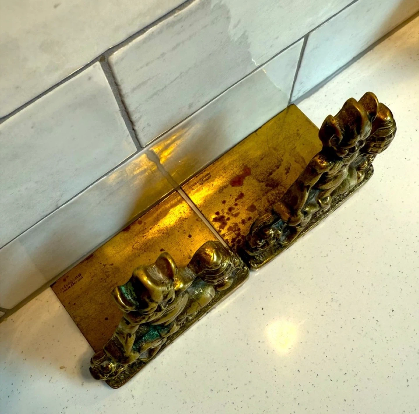 The bookends are made of solid bronze and are noted for their weight and sturdy construction.