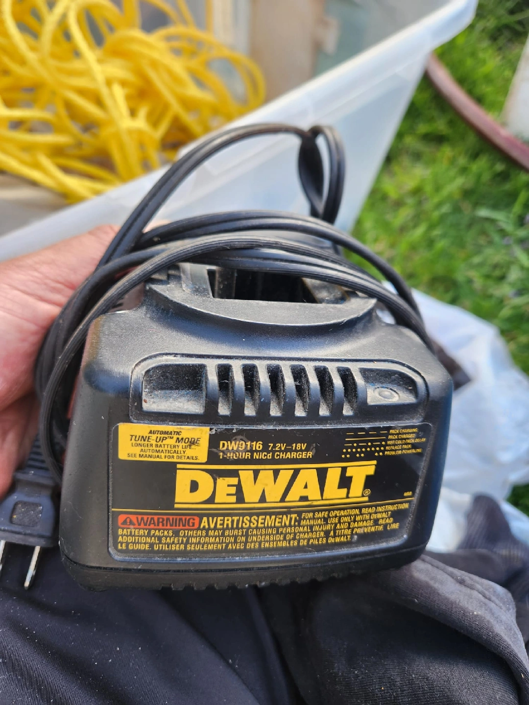10Selling a DeWalt DW9116 7.2V-18V 1-Hour NICd Charger. It features an automatic tune-up mode for longer battery life. Please read the manual for safe operation and additional safety information.