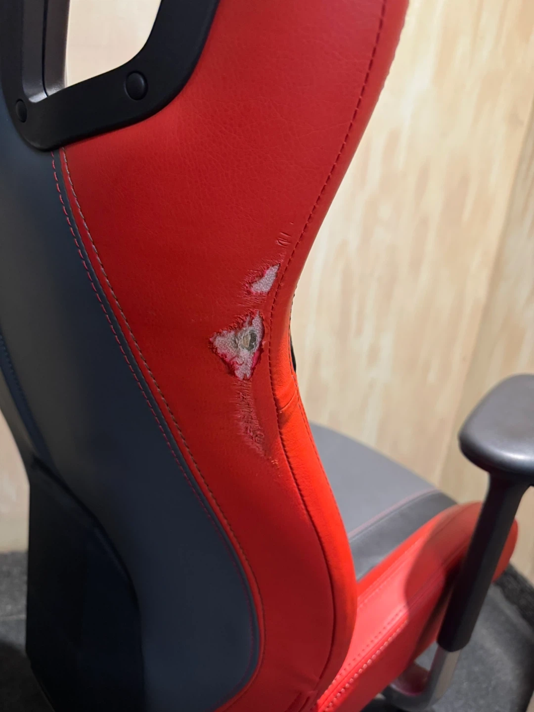 Selling a Cobra E-Blue Pro-Gaming chair in red and black. There is some wear and tear on the side of the chair as shown in the picture, but otherwise it's in usable condition. Great for gaming or working from home!