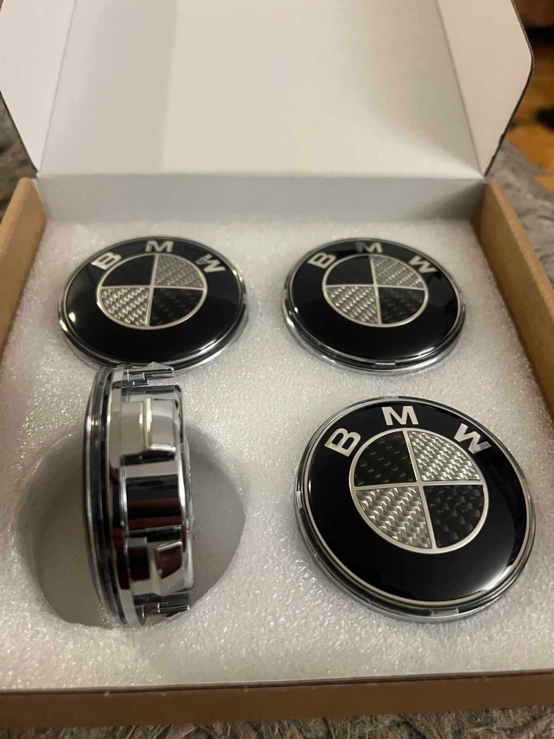 75Selling a brand new set of 4 REAL CARBON FIBER Floating BMW wheel center caps! They come in their original box and are ready to give your ride a fresh look I can ship with 1 to 2 business day delivery for an extra $10 charge. Prices are non negotiable .