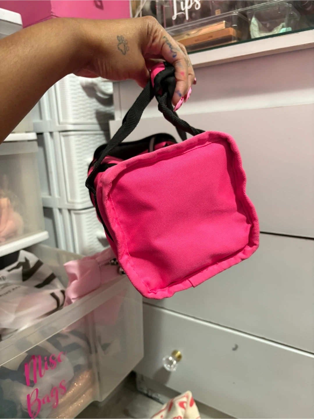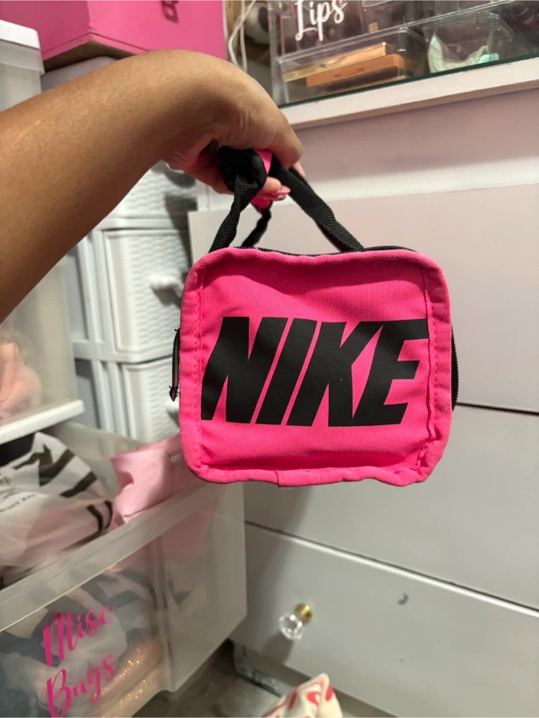Selling a cute pink Nike lunch bag! It's in great condition and perfect for carrying your lunch to work or school. The bag features the Nike logo in black and has a convenient handle for easy carrying