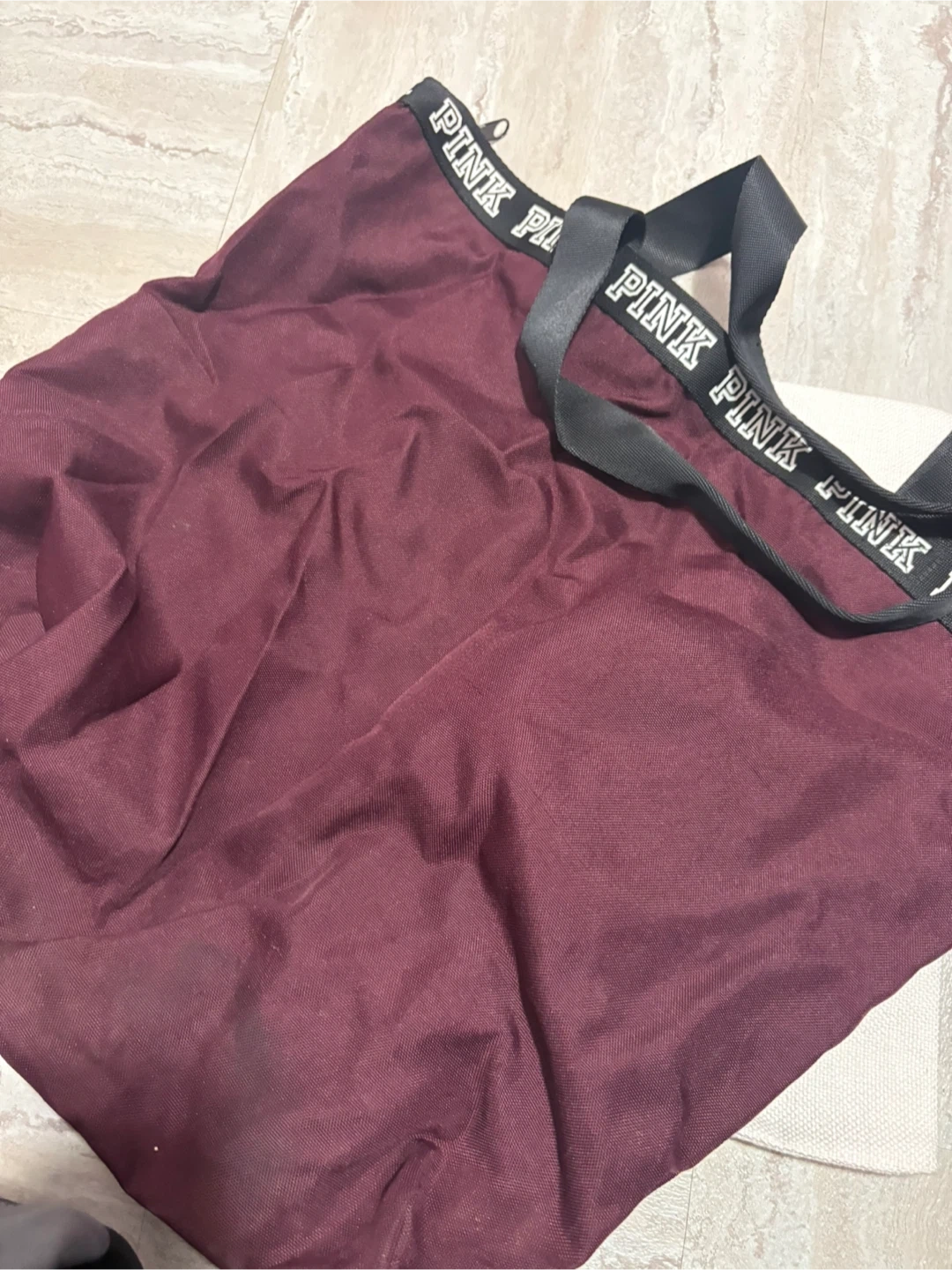 A cute PINK tote bag in a lovely burgundy colour! Perfect for carrying your essentials around town or for a quick trip to the gym. It's in great condition and ready for a new home