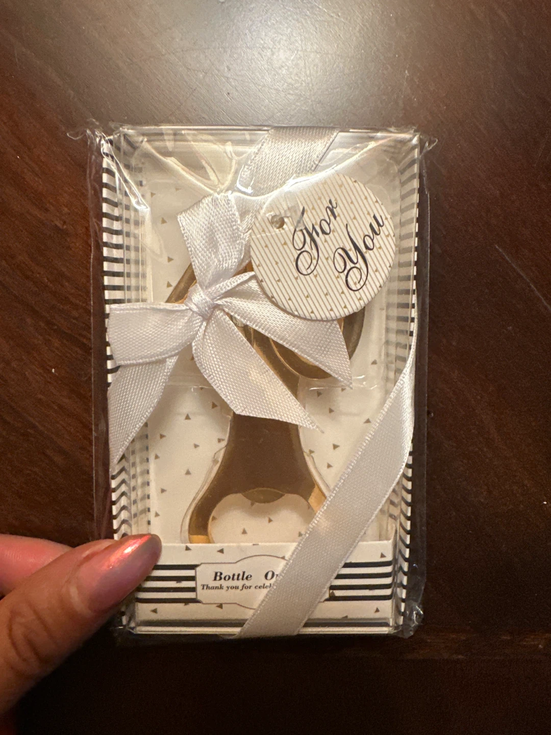 Brand new bottle opener, still in its original packaging! It's a cute little favour, perfect for any celebration or party. Comes with a ribbon and 'For You' tag