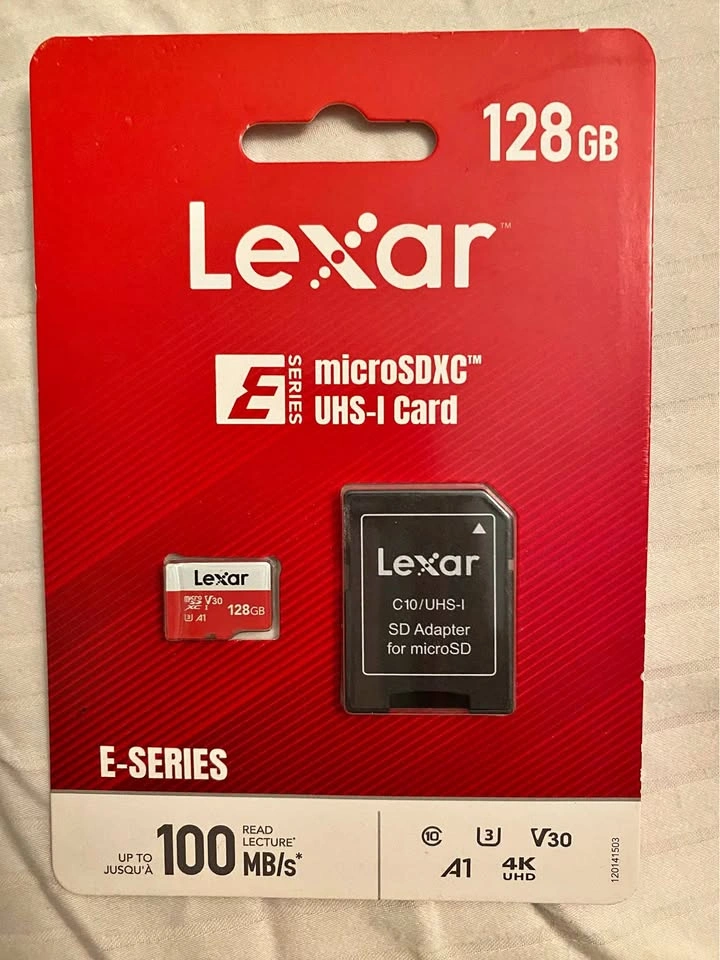 Buy & SellLexar E-Series 128 GB microSDXC UHS-I CardLexar E-Series 128 GB microSDXC UHS-I Card$10Brand new still sealed Lexar E-Series 128 GB microSDXC UHS-I Card with SD AdapterWHERE TO MEETCheck LocationView MapSELLERBella DiggsFairview262 reviews0 chats·0 favorites·7 views
