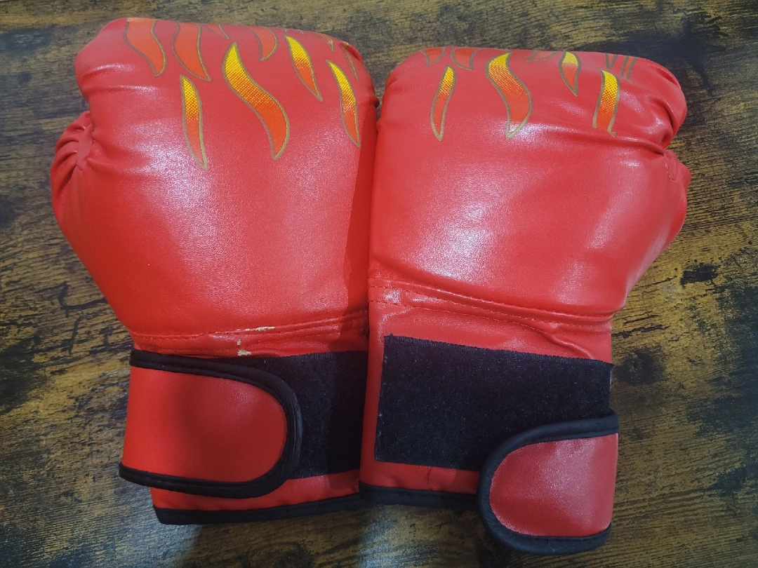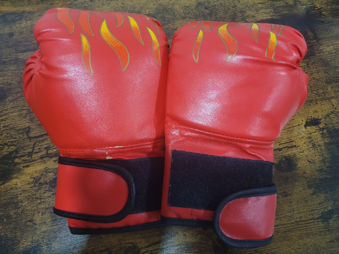 Selling a pair of red boxing gloves! They're in good condition and would also make a great addition to a Halloween costume! As seen in photos, the gloves have some slight wear and tear marks.