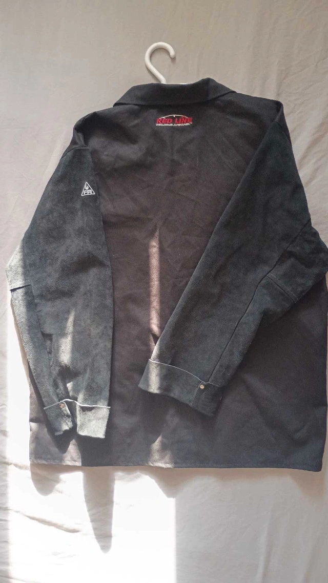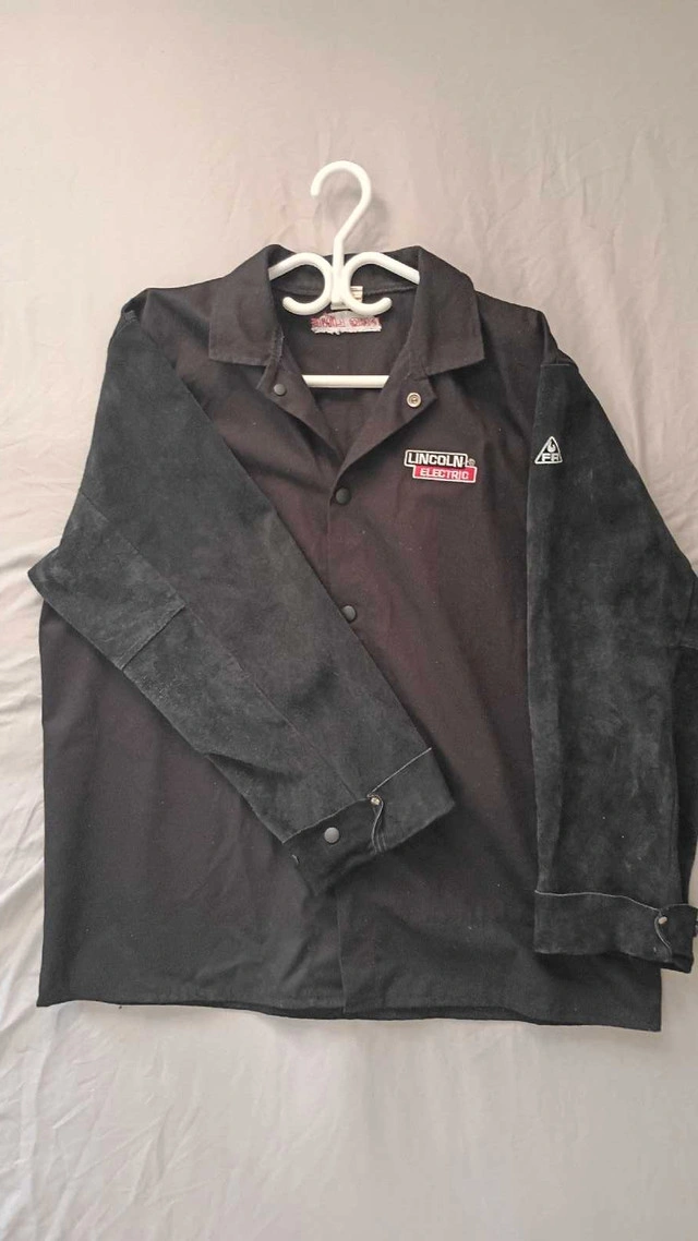 This is a Lincoln Electric Welder's Leather Jacket, designed for protection and durability in welding environments. Used only twice. XL ( Extra Large Size) This used jacket features leather sleeves for heat resistance and a canvas body for comfort. It has some signs of wear, but it is still in good condition and ready for work. Here are some of its features: * Leather Sleeves * Canvas Body * Button Closure * Lincoln Electric Branding I'm asking $30, given its good condition and the quality of the Lincoln Electric brand. If the ad is up, it's still available!