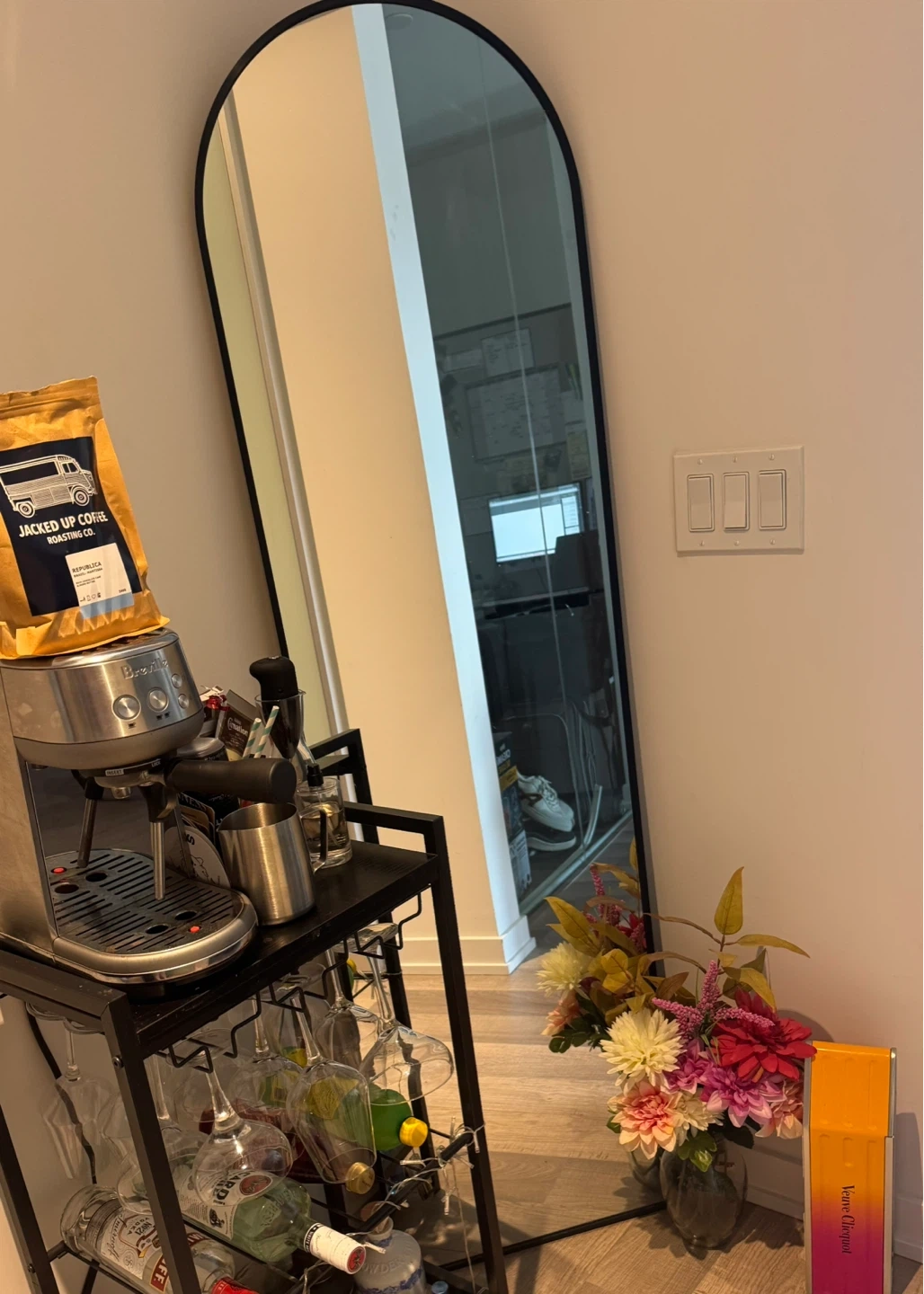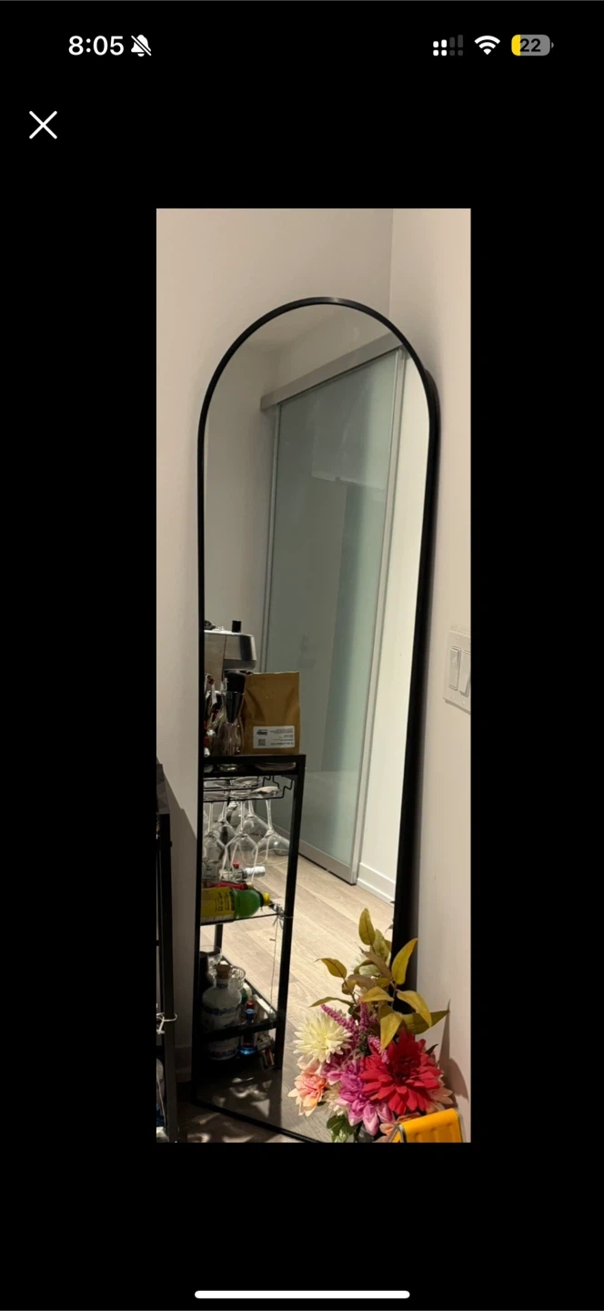 Selling a full-length mirror with a sleek black arched frame! It's in great condition and would look perfect in any room. The mirror is tall and provides a full view, making it ideal for getting ready or adding a touch of elegance to your space. 65x18 inches