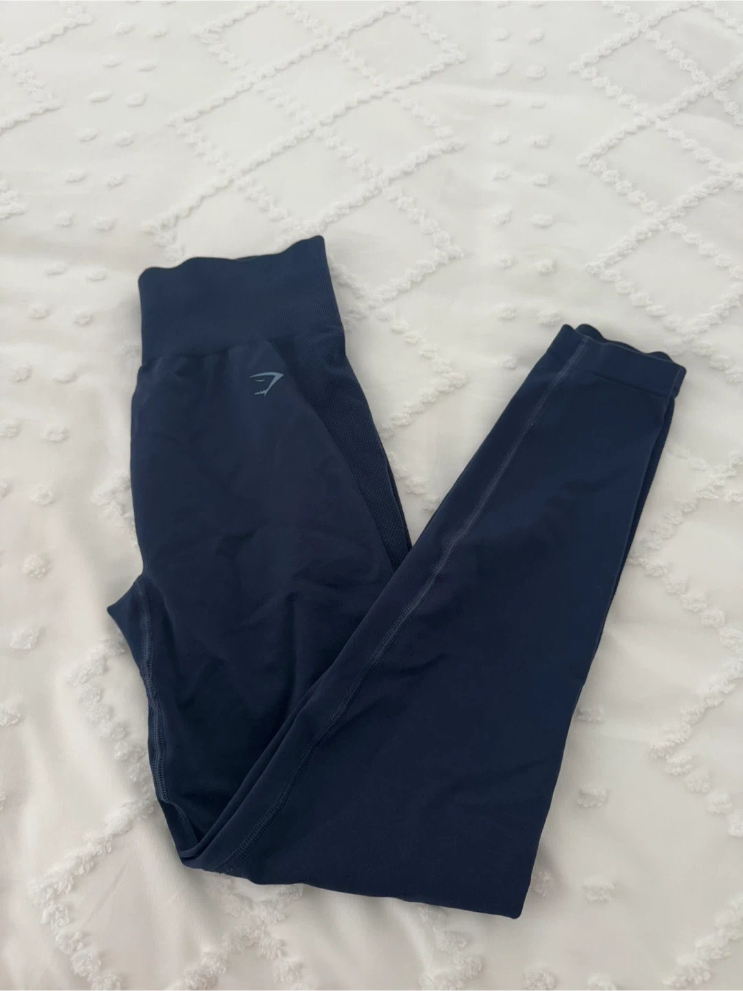 277Selling a pair of Gymshark flex leggings in navy blue! They're in great condition and ready for a new home. Perfect for workouts or just lounging around