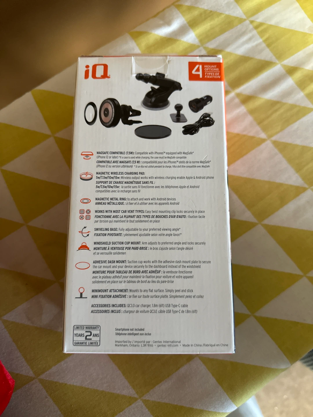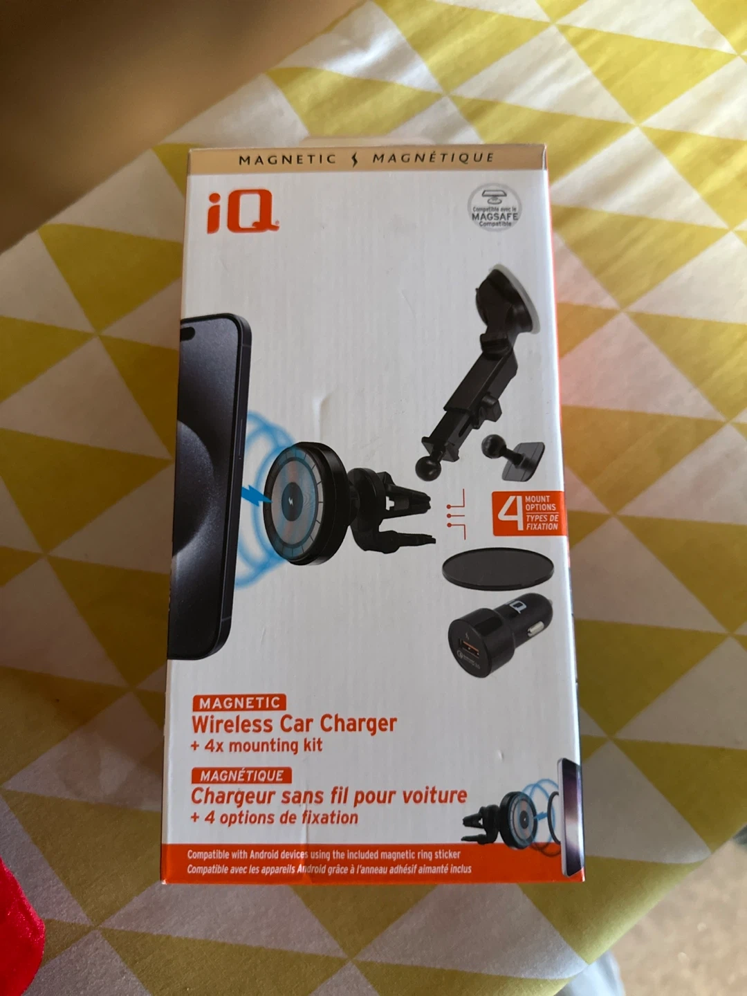 Selling a brand new, sealed iQ Magnetic Wireless Car Charger with a 4X mounting kit! It's MagSafe compatible and also works with Android devices using the included magnetic ring sticker. The box includes a QC3.0 car charger and an 1.8m USB Type-C cable. It offers 4 mount type options for fixation: vent mount, windshield mount, adhesive dash mount, and mini mount