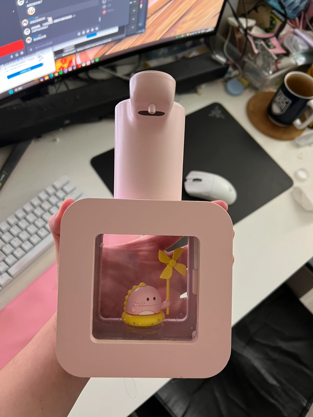 Selling a cute pink automatic soap dispenser with a dinosaur design! It's in great condition and would be perfect for a kid's bathroom or anyone who loves dinosaurs. It adds a touch of fun to handwashing!