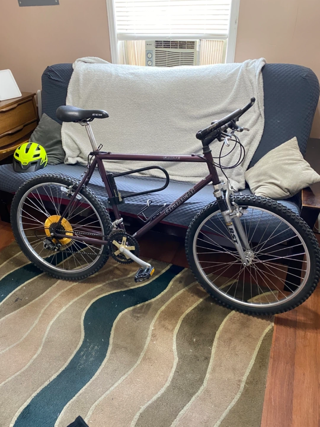 21” Frame, 26” Tires, 21 Speed, RST Forks, Shimano Altus Rear Derailleur and Shimano Brakes, CCM seat, Kryptonite Lock, Bell Helmet (53-60cm).