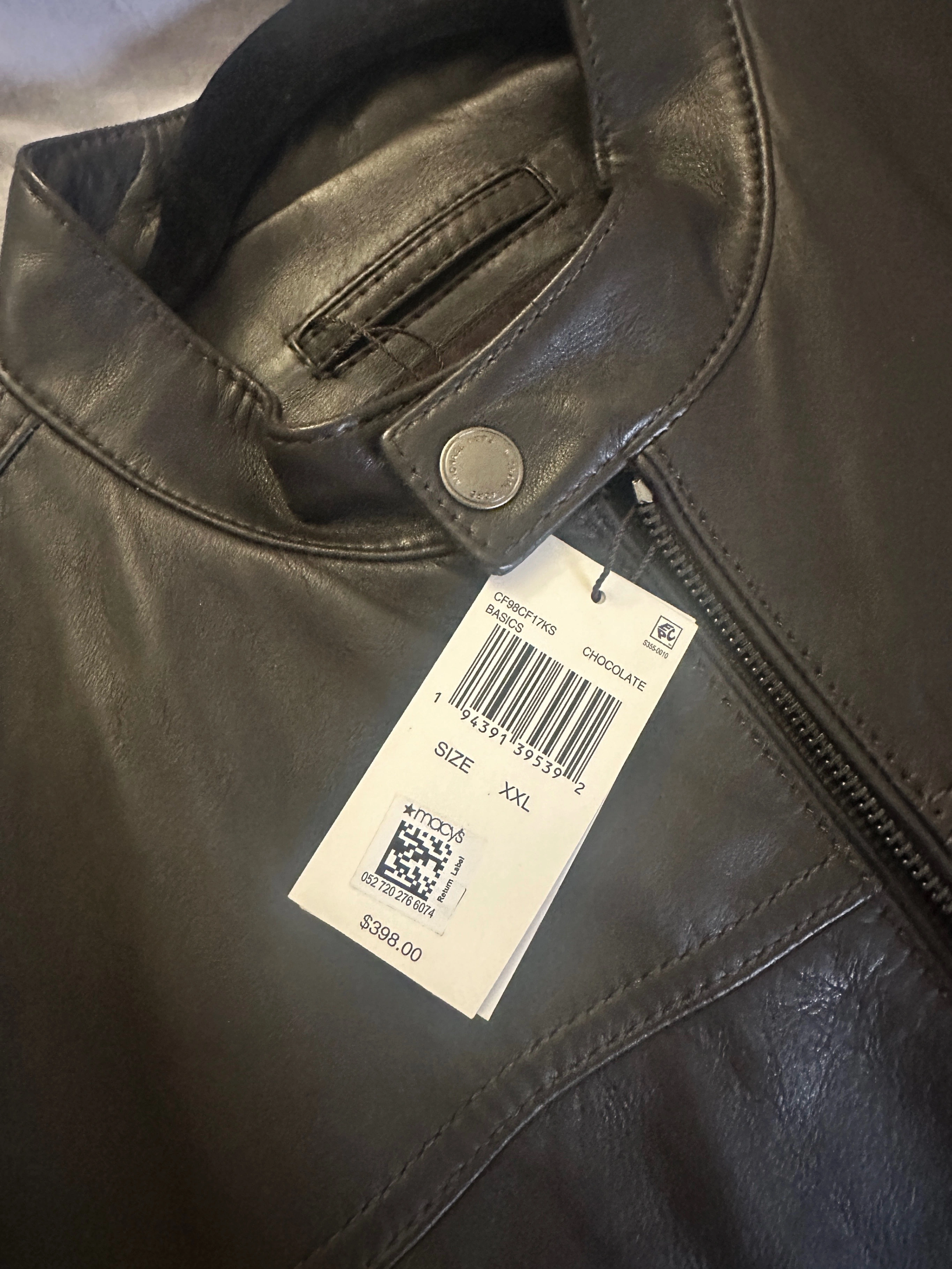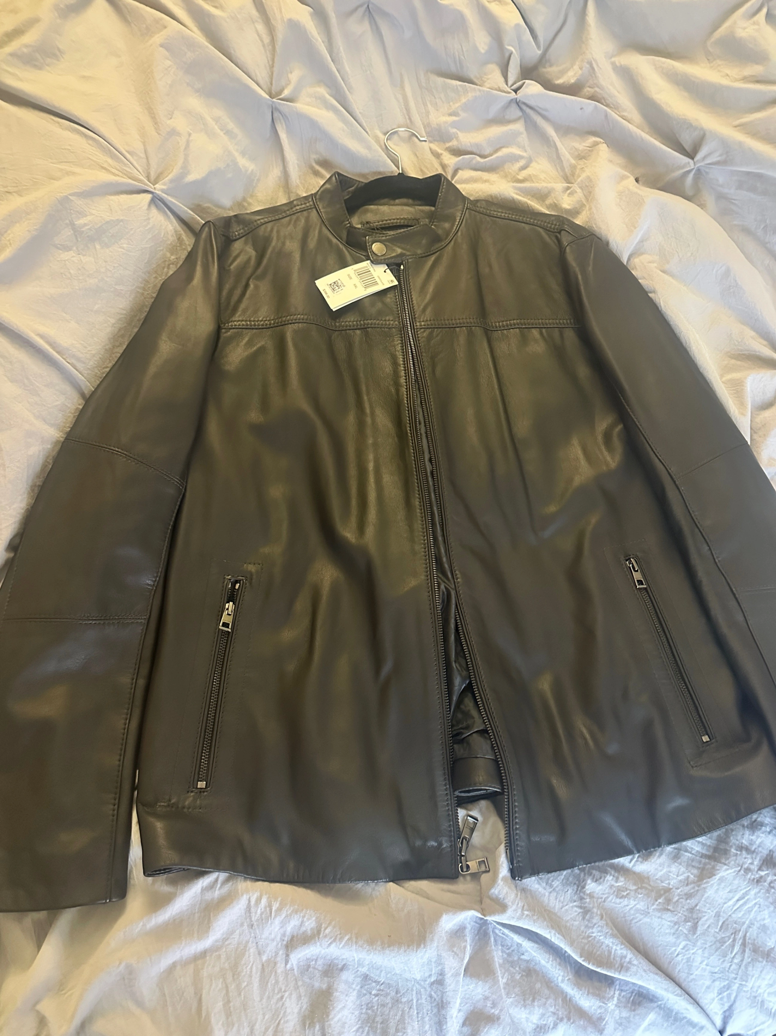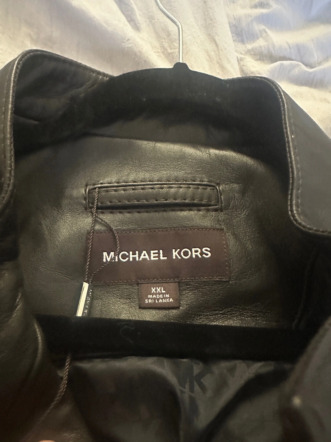 60Brand new Michael Kors men's leather jacket in a rich chocolate brown color, size XXL. Never worn and still has the original tags attached ($398 retail at Macy’s). Classic moto style with zip front, snap collar, and zippered pockets. Made from genuine leather, sleek and stylish—perfect for elevating your fall or winter wardrobe! Brand new with tags attached Size: Men’s XXL 100% genuine leather Rich chocolate brown color Original retail price: $398 From a smoke-free home