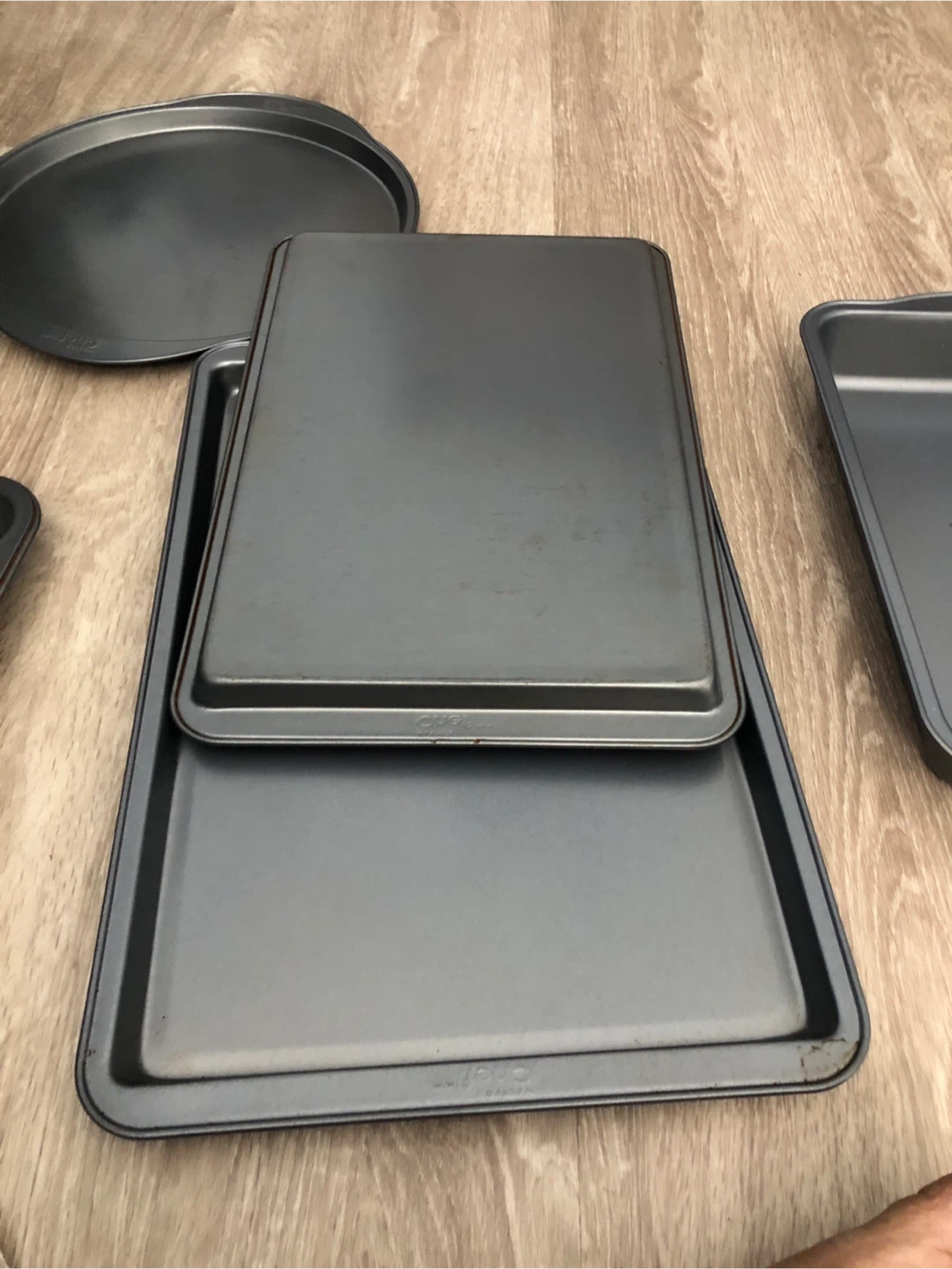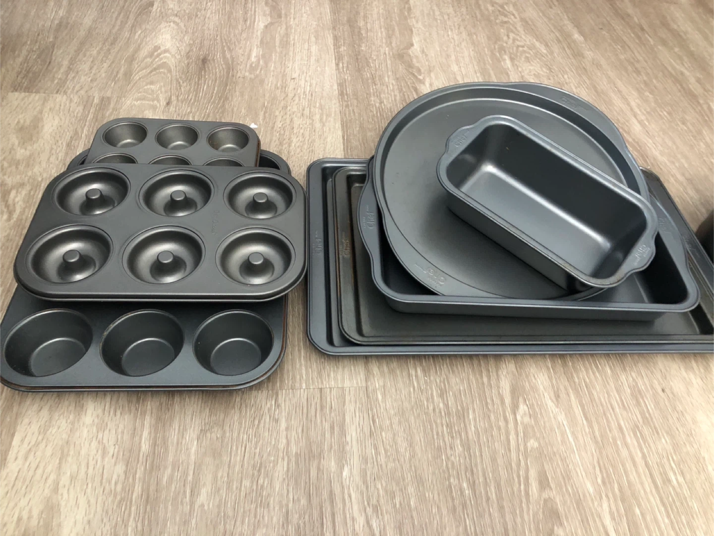 117I'm selling a collection of baking pans from Masterchef and Betty Crocker! Includes a loaf pan, donut pan, muffin pans, and baking sheets. They're rarely used and still have lots of baking left in them