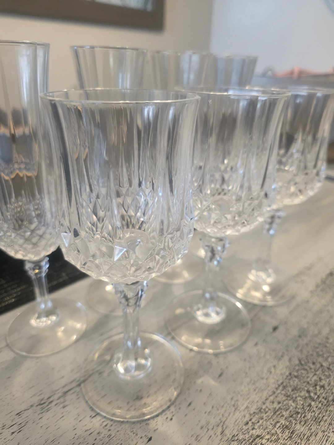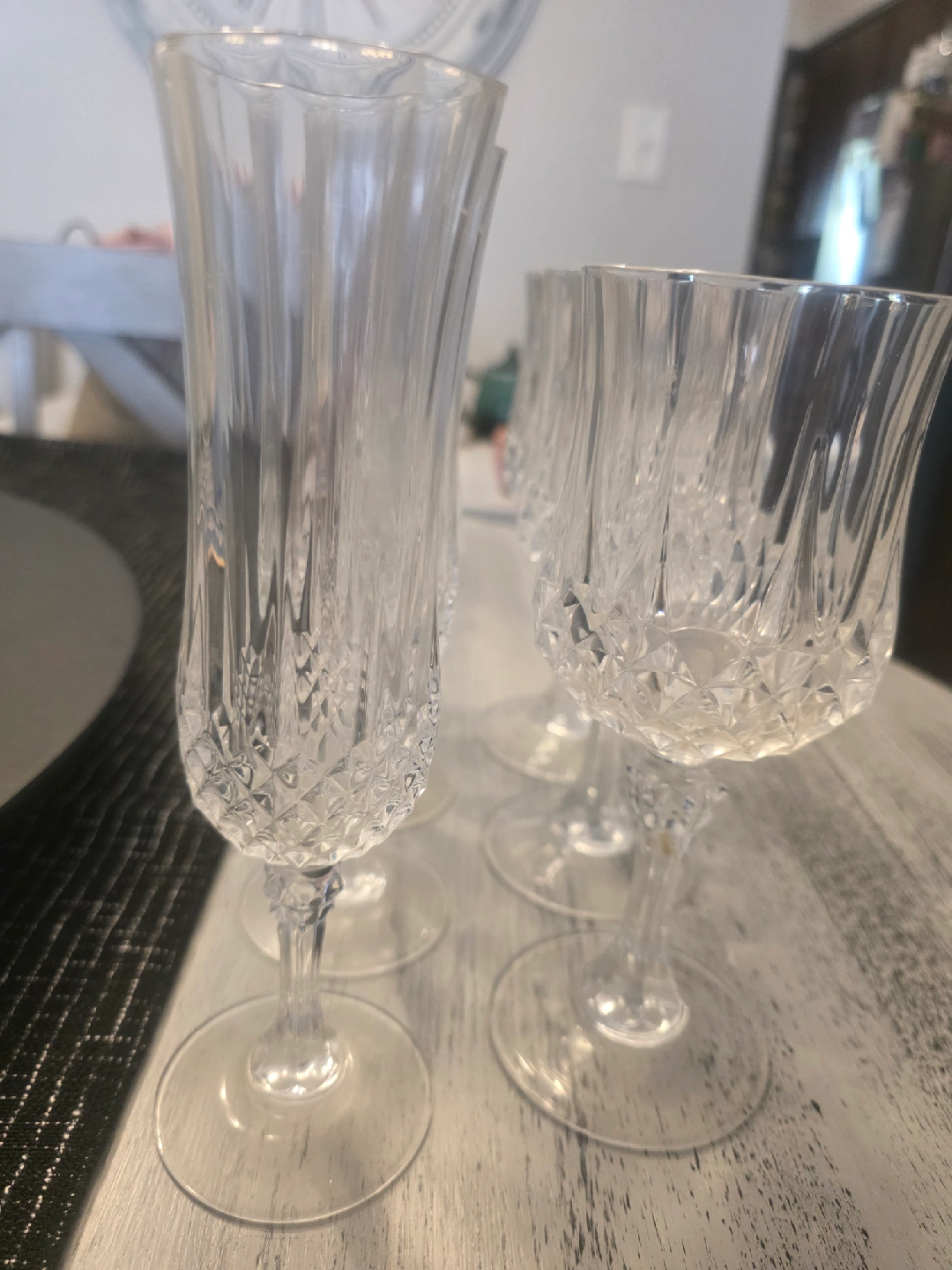 4 flutes 3 wine glasses