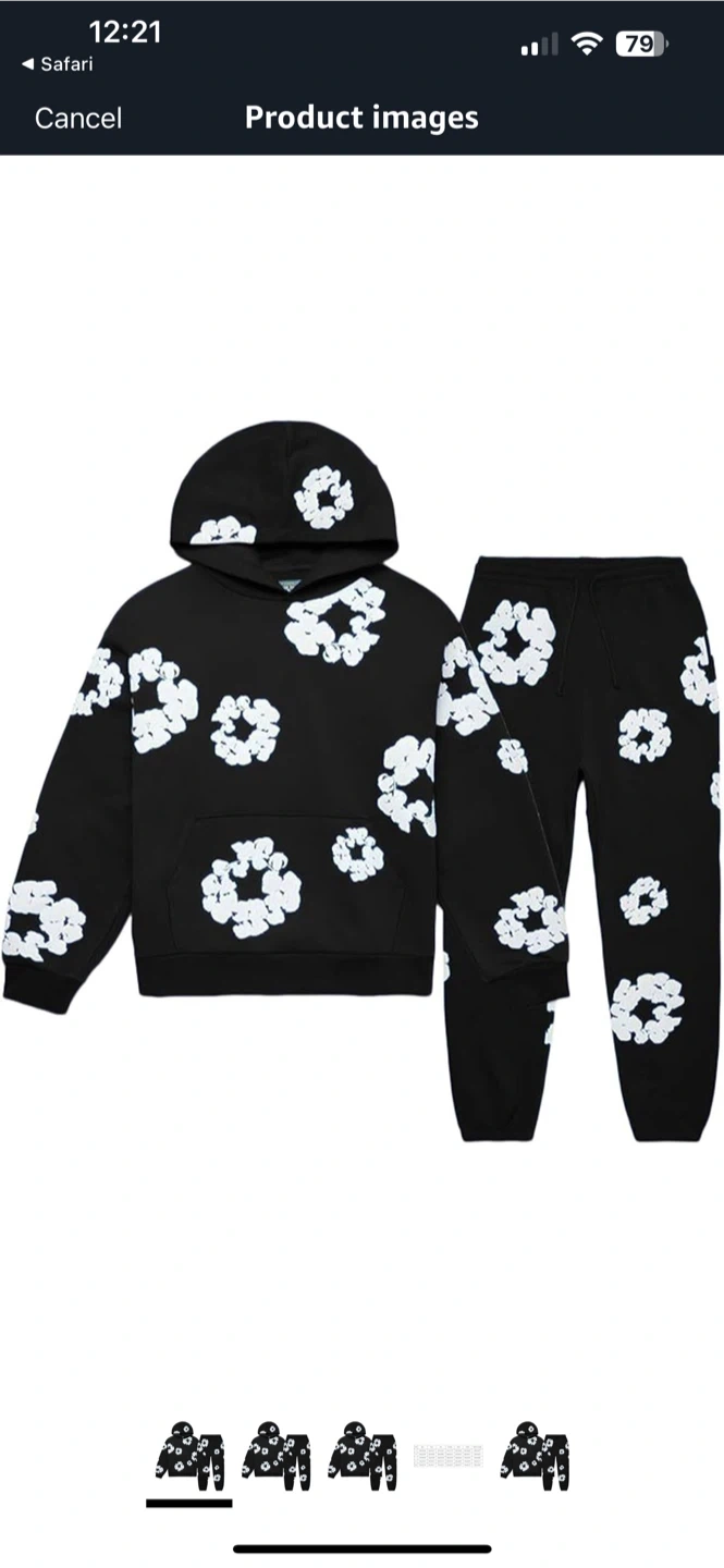 Cute black hoodie and pants set with a white floral design for kids! Perfect for keeping your little one cozy and stylish. Great for everyday wear!