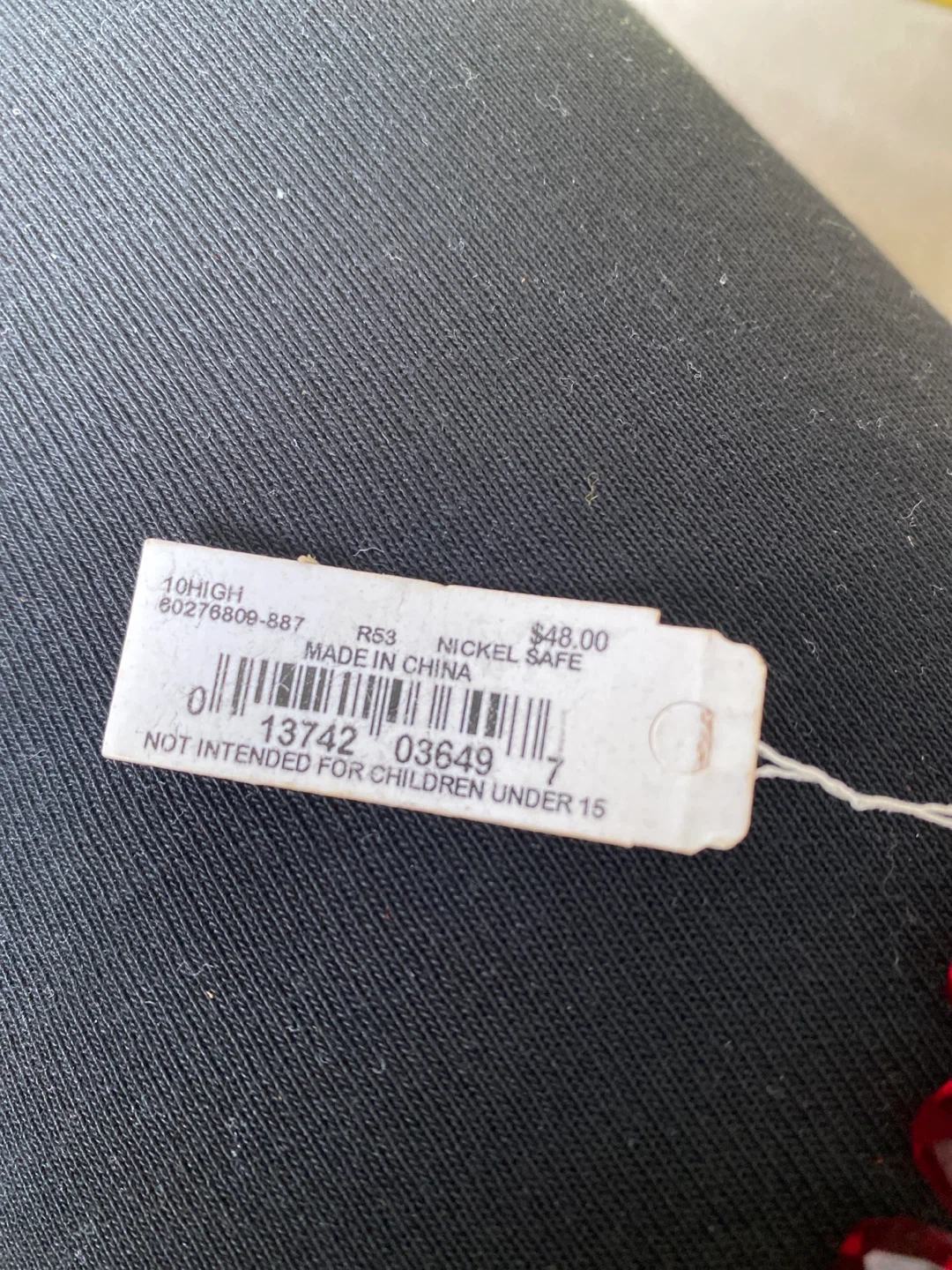 This is a beautiful Jones New York red beaded necklace. It features red beads with gold-tone accents. The tag shows it was originally $48. Nickel safe and not intended for children under 15