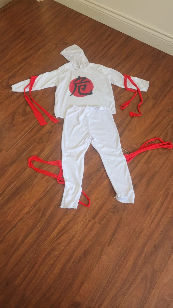 Selling a Costumes Ninja costume in child medium size (8-10). The fabric is 100% polyester. This costume is perfect for dress-up or Halloween!