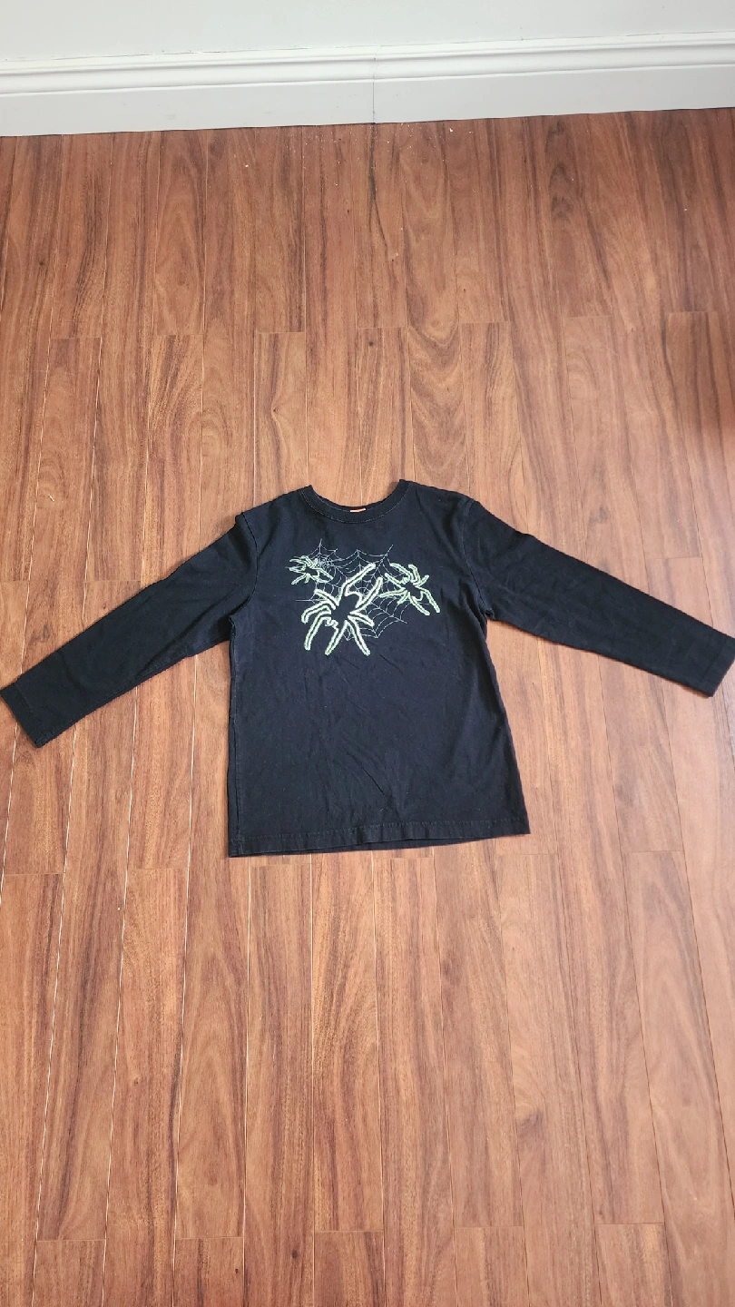 A cute black long-sleeve shirt with a glow in the dark spider design! The size is M (8/10)kids unisex.