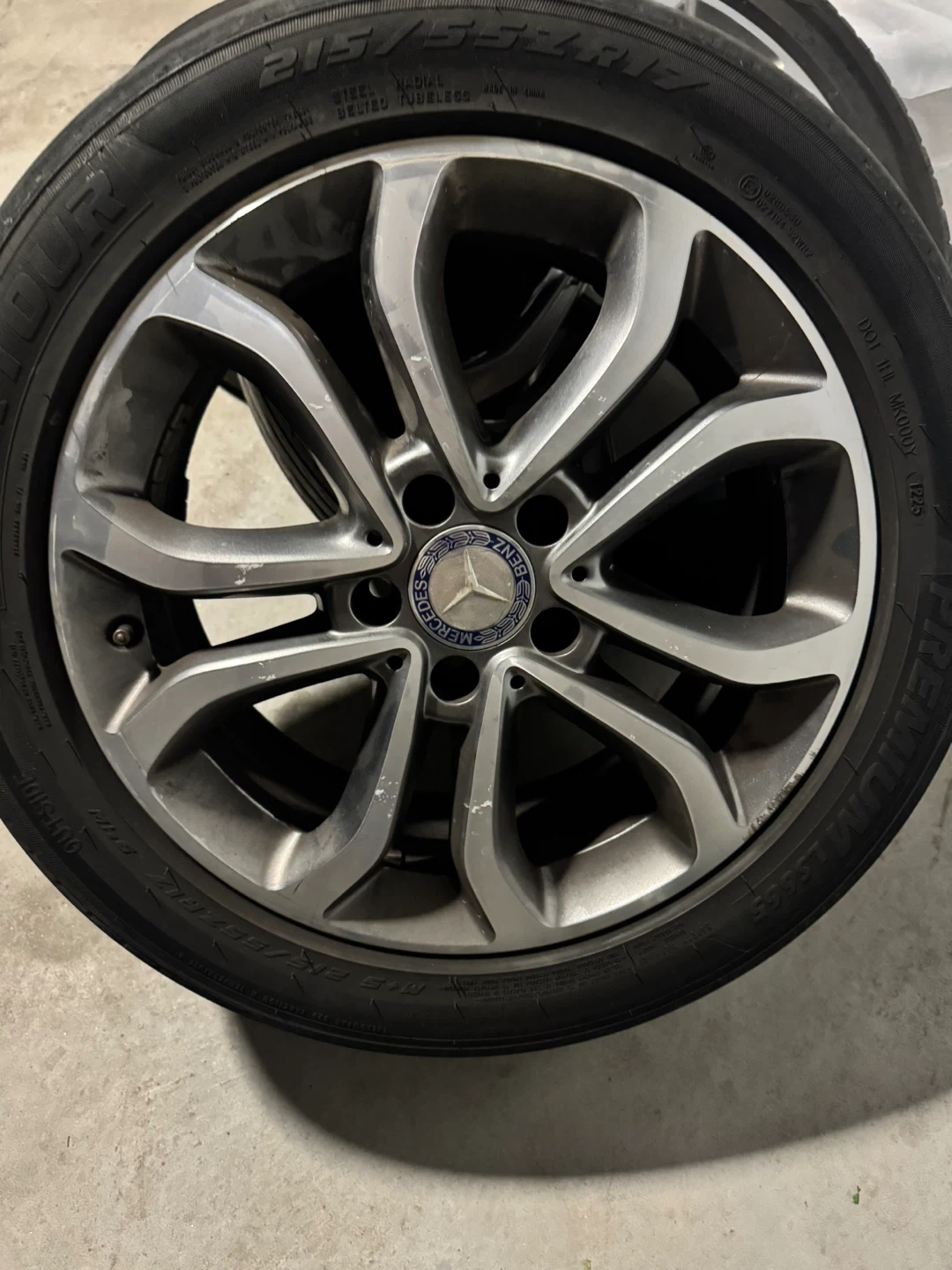 Selling a set of Mercedes-Benz tires and rims. The tire size is 215/55R17. They are in used condition and ready for a new home!