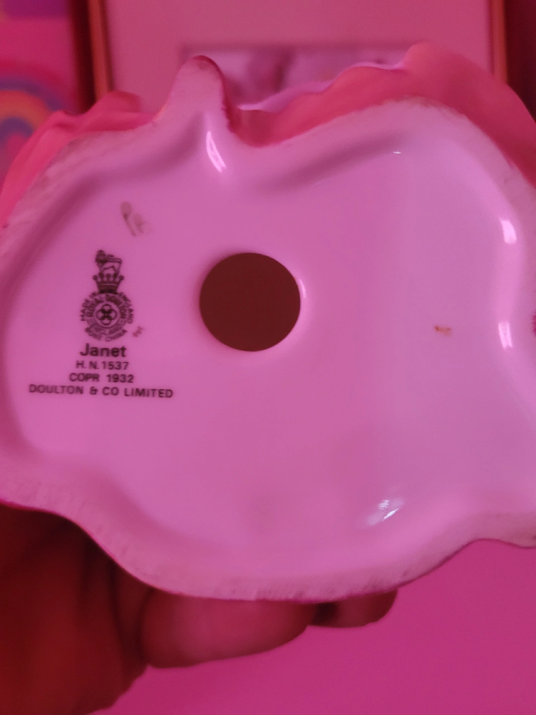 Royal Doulton figurine named Janet, model number H.N.1537. This lovely figurine was manufactured in 1932. It's in great condition and ready to find a new home