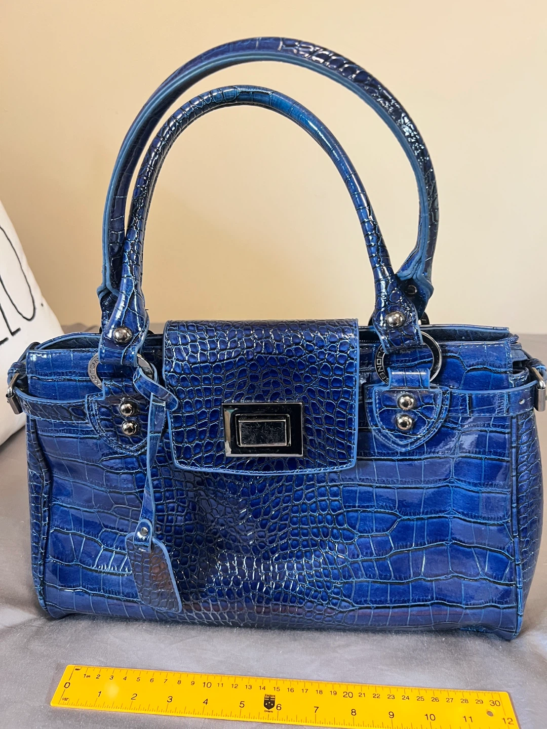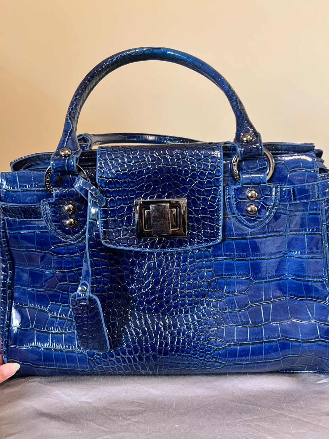 Blue Croc Embossed Handbag